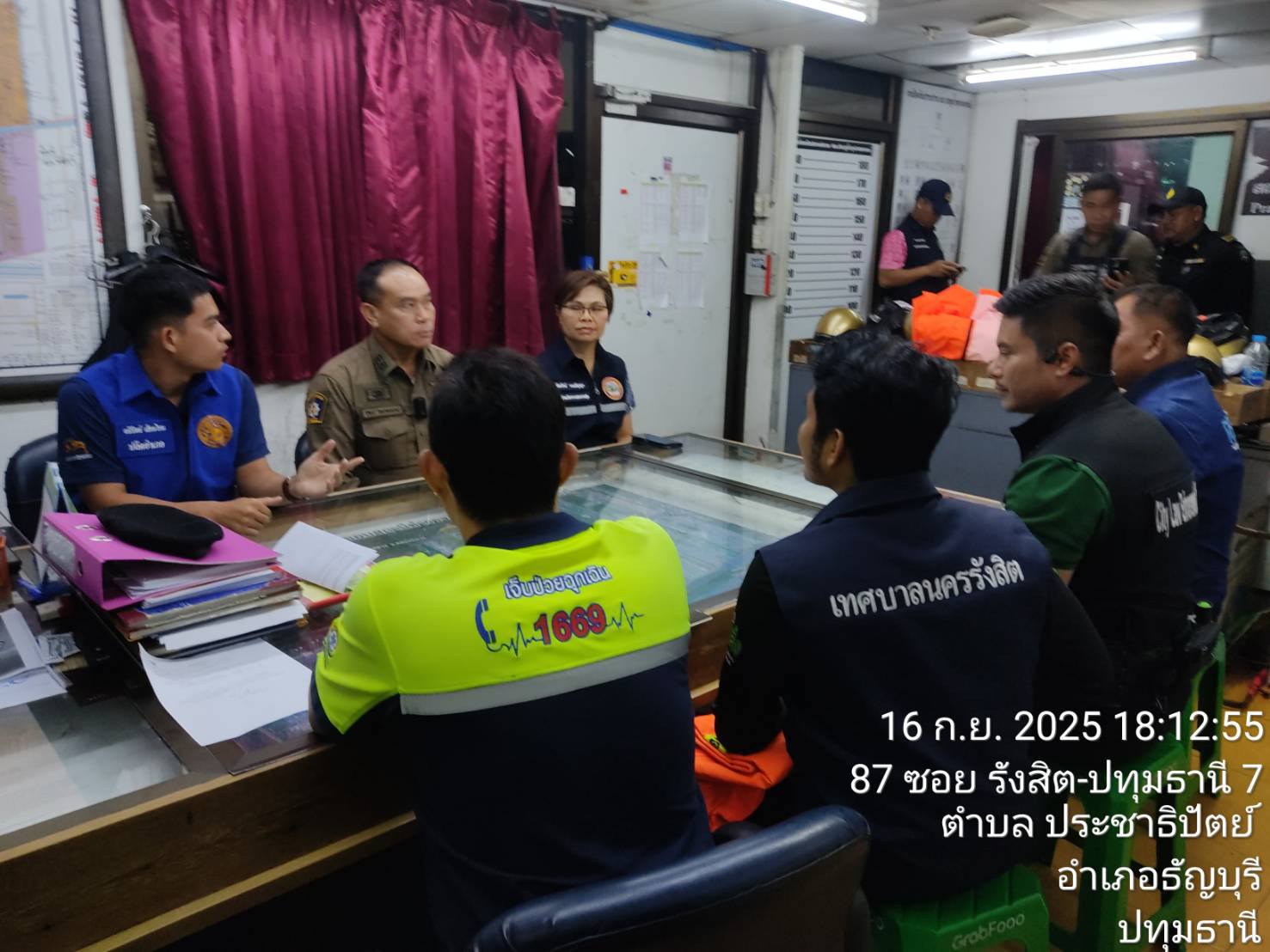 จ่าเอก วีรภัทร ผลบูรณ์ รองปลัดเทศบาลนครรังสิต พร้อมด้วย เจ้าหน้าที่ฝ่ายปกครอง เจ้าหน้าที่เทศกิจ เจ้าหน้าที่กองสาธารณสุขและสิ่งแวดล้อม เจ้าหน้าที่สำนักช่าง และเจ้าหน้าที่ตำรวจ สภ.จุฬาลงกรณ์