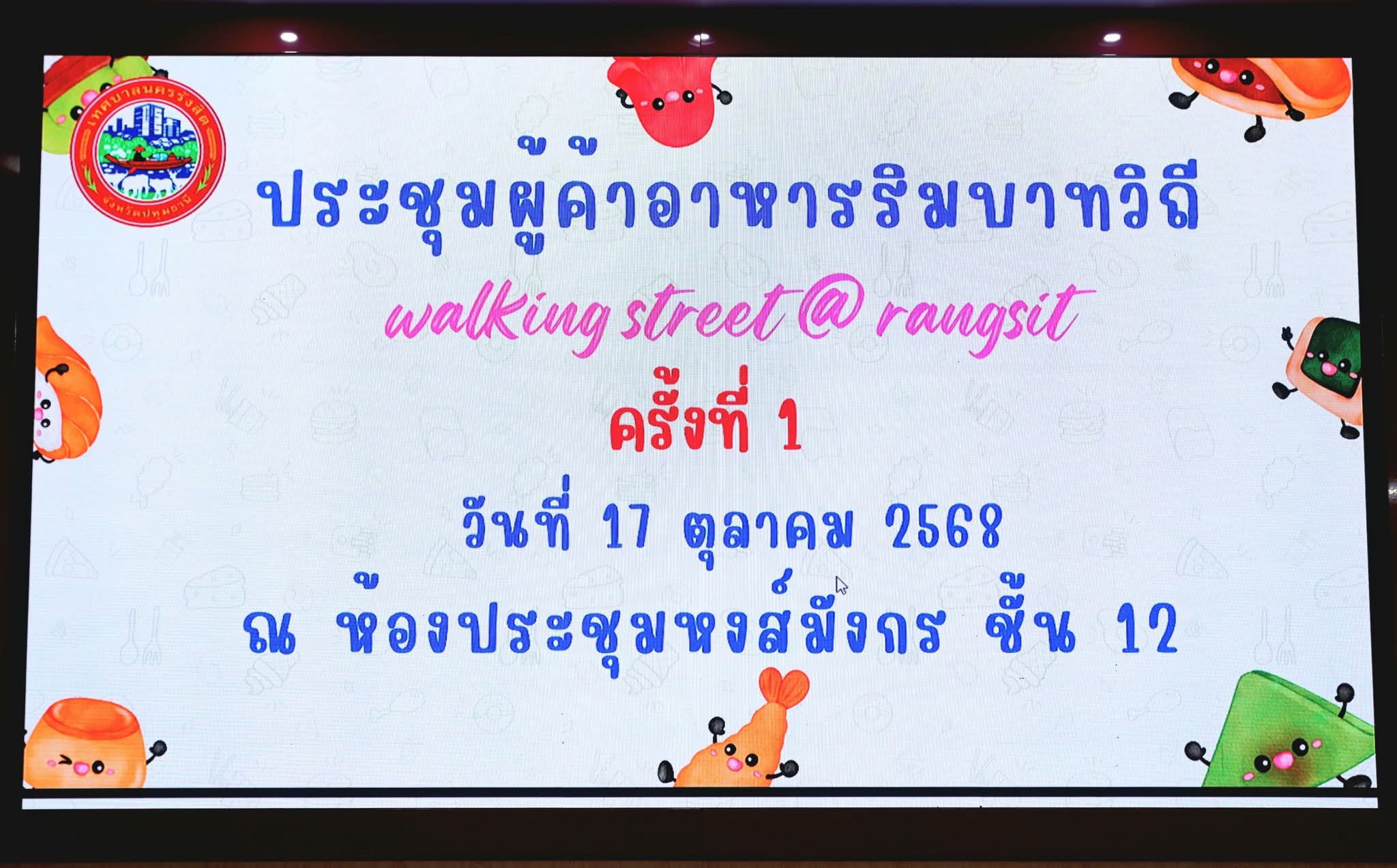 ร้อยตำรวจเอกดร.ตรีลุพธ์ ธูปกระจ่าง นายกเทศมนตรีนครรังสิต เป็นประธานในการประชุมผู้ค้าอาหารริมบาทวิถี Walking Street @Rangsit ครั้งที่ 1