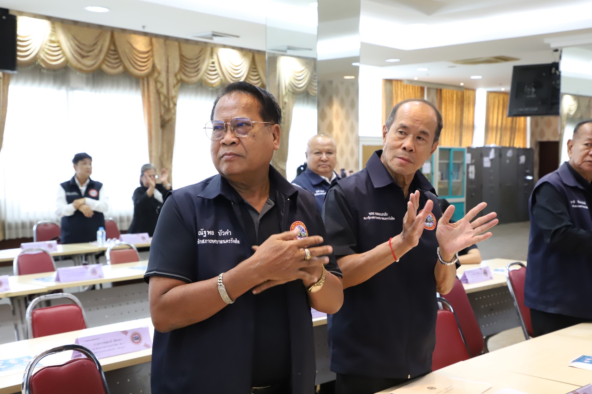 ร้อยตำรวจเอก ดร.ตรีลุพธ์ ธูปกระจ่าง นายกเทศมนตรีนครรังสิต มอบหมาย นายชยุต สินพูนภักดิ์ นายวรรณชัย อิทธิมณีสิริ นางสาวอรุณรัตน์ มงคลพิทักษ์กุล นายทรงสิทธิ์ ฐานุกิจอนันต์ รองนายกเทศมนตรีนครังสิต เลขานุการนายกเทศมนตรี ที่ปรึกกิตติมศักดิ์นายกเทศมนตรี ประธานสภาเทศบาล รองประธานสภาเทศบาล เลขานุการสภาเทศบาล สมาชิกสภาเทศบาล หัวหน้าส่วนราชการ ผู้อำนวนยการสถานศึกษา และเจ้าหน้าที่เทศบาลนครรังสิต
