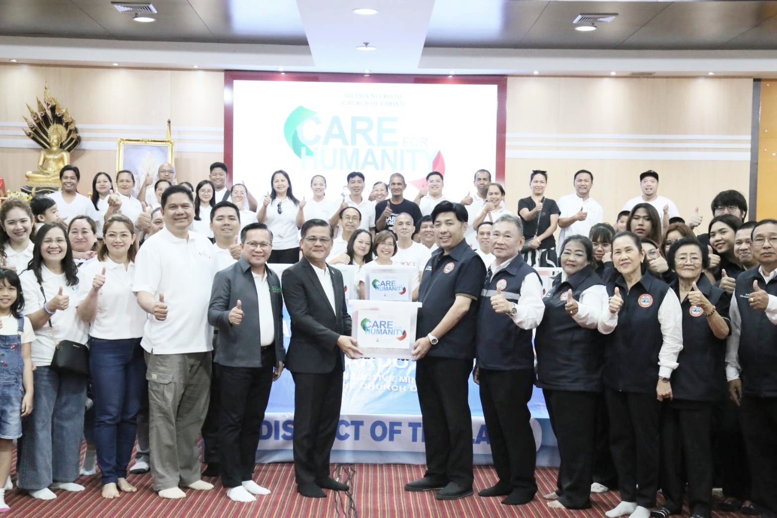 รับมอบสิ่งของอุปโภคบริโภค จาก มูลนิธิเฟลิกซ์ ฮิซากุน มานาโล่ โดยมี Mr.willen D. Regalado (District Supervising Minister) และ Mr. Edwin Estrellado (Assistant District Minister) พร้อมคณะ เป็นผู้ส่งมอบ