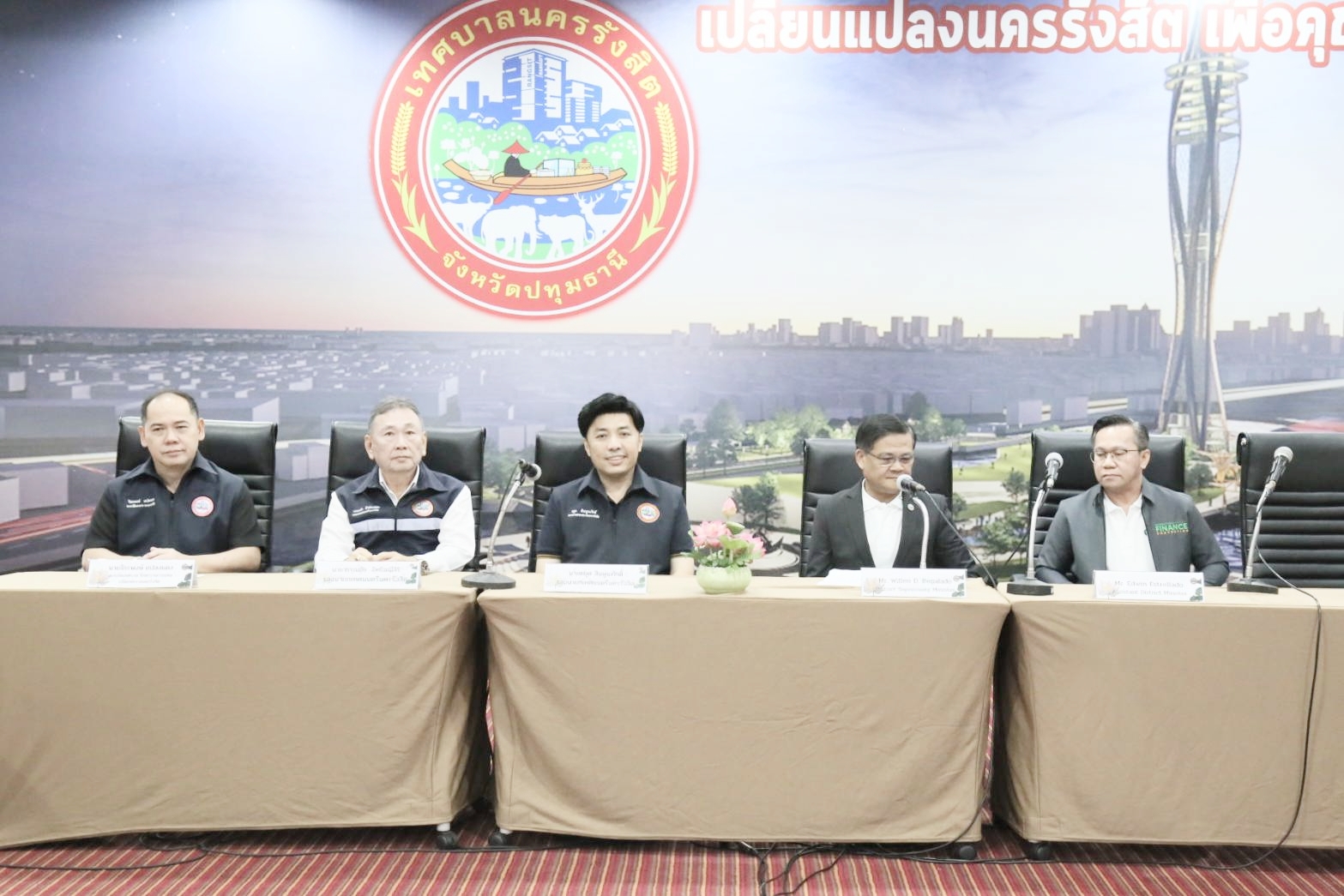 ร้อยตำรวจเอก ดร. ตรีลุพธ์ ธูปกระจ่าง นายกเทศมนตรีนครรังสิต มอบหมาย นายชยุต สินพูนภักดิ์ รองนายกเทศมนตรีนครรังสิต นายวรรณชัย อิทธิมณีสิริ รองนายกเทศมนตรีนครรังสิต คณะผู้บริหาร สมาชิกสภาเทศบาล ที่ปรึกษากิตติมศักดิ์นายกเทศมนตรี นายจิระพงษ์ แปลงแดง รองปลัดเทศบาล รักษาการแทน ปลัดเทศบาลนครรังสิต นายเพิ่มพงษ์ พุ่มวิเศษ ผู้อำนวยการกองสาธารณสุขและสิ่งแวดล้อม และเจ้าหน้าที่กองสวัสดิการสังคม