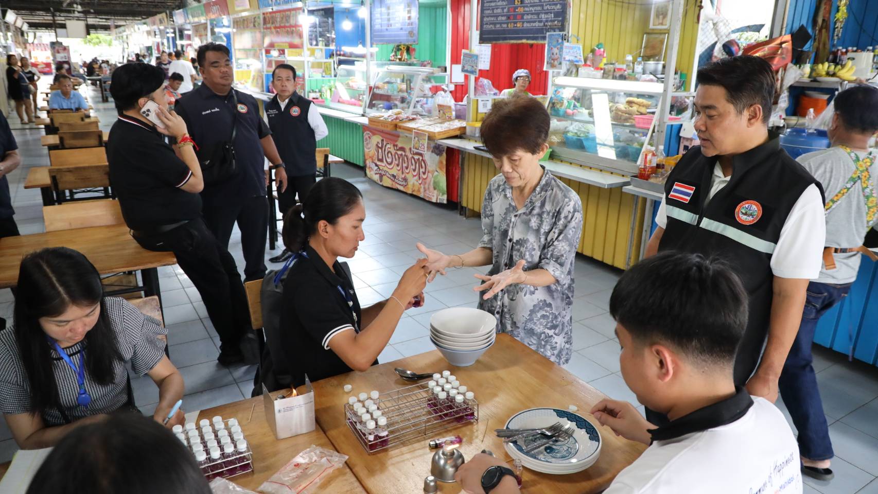 ลงพื้นที่พร้อม นายเศวตสันต์ พาณิชยเวช นักวิชาการสาธารสุขชำนาญการ และเจ้าหน้าที่กองสาธารณสุขและสิ่งแวดล้อม สุ่มตรวจอาหารที่วางจำหน่ายภายในตลาดสะพานแดง เพื่อเป็นการเฝ้าระวังสุขาภิบาลอาหารในตลาด ตามโครงการพัฒนาตลาด ประจำปีงบประมาณ พ.ศ. 2569 โดยการตรวจเชื้อโคลิฟอร์มแบคทีเรีย (SI MEDIUM) ในอาหาร การตรวจสอบในครั้งนี้ เพื่อคุณภาพมาตรฐานของอาหารที่จำหน่ายโดยมุ่งเน้นความปลอดภัยของผู้บริโภคให้ถูกสุขลักษณะตามมาตรฐานสาธารณสุข