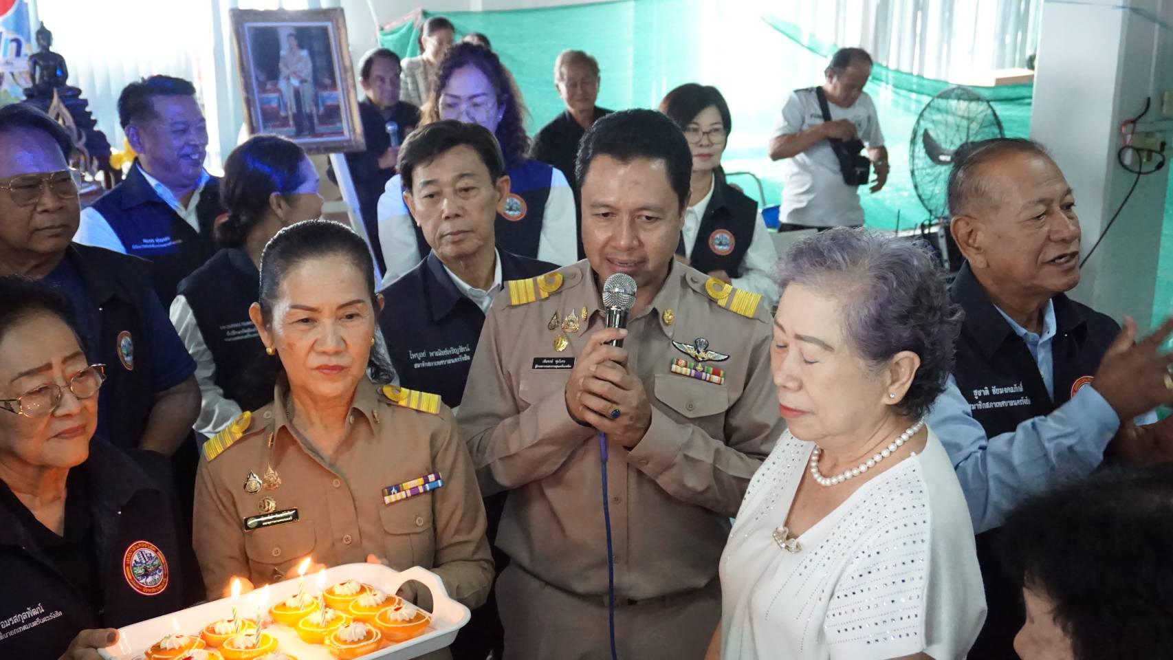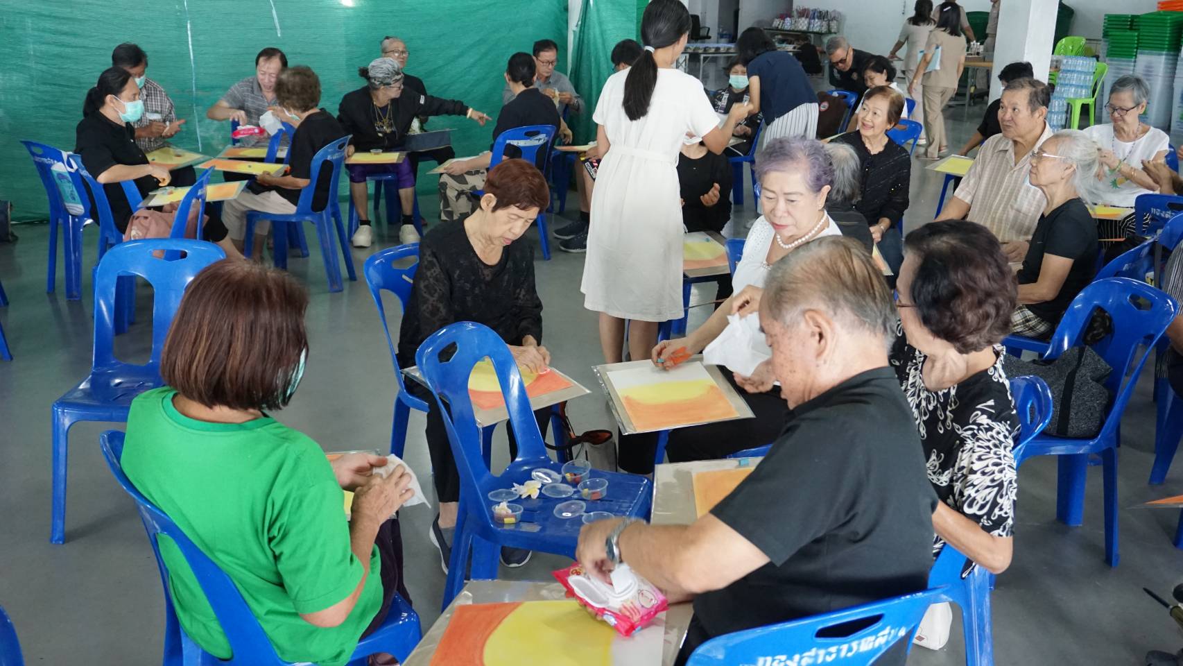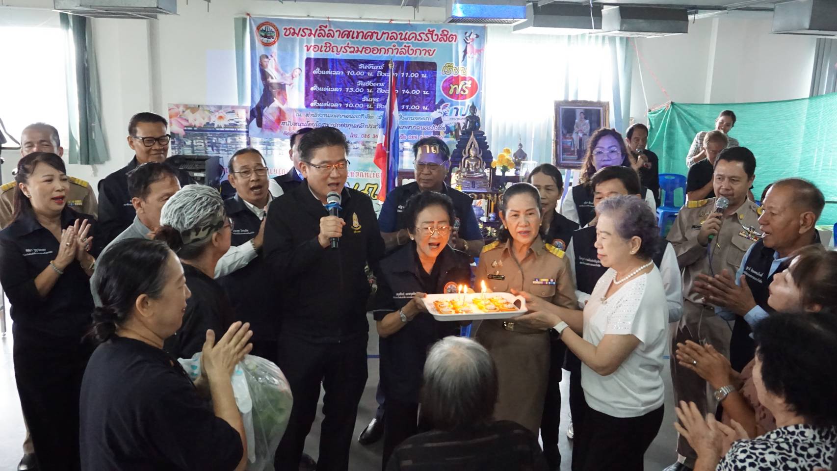 ร่วมกิจกรรมชมรมผู้สูงอายุตลาดรังสิต ภายในงานมี กิจกรรมอบรมทักษะการใช้สีเพื่อส่งเสริมความคิดสร้างสรรค์ โดย นางศรัญญา อุทัยภัตรากูร และ นางสาวธัญญมาศ เทพญา นักศิลปะบำบัด เป็นวิทยากรให้ความรู้ มีการให้บริการตรวจสุขภาพเบื้องต้นให้แก่ผู้สูงอายุ การออกกำลังกายเพื่อสุขภาพ โดย เจ้าหน้าที่ฝ่ายบริการสาธารณสุข กองสาธารณสุขและสิ่งแวดล้อม จากนั้นพบปะพูดคุยและอวยพรวันเกิดผู้สูงอายุ
