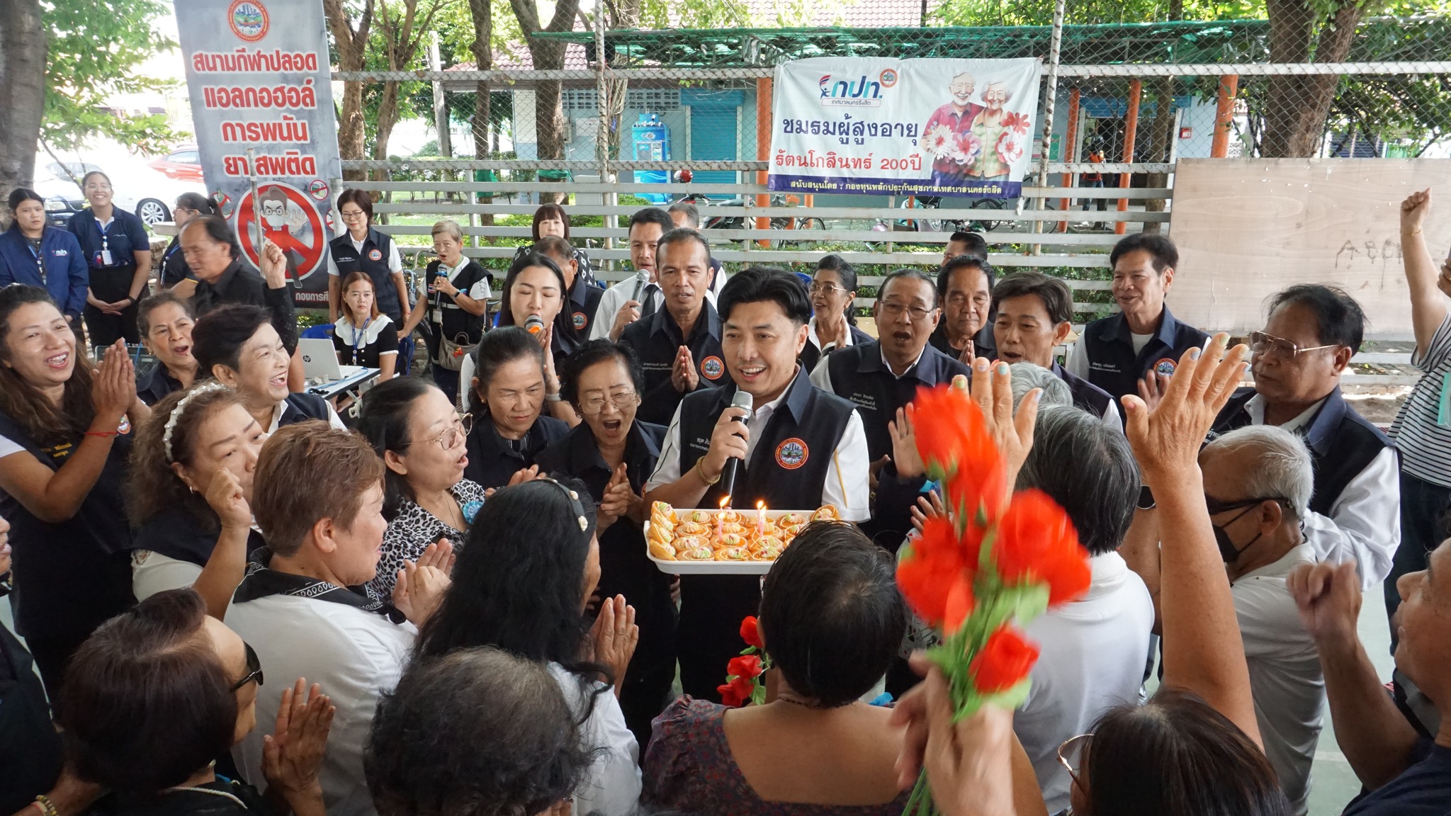 ร้อยตำรวจเอก ดร. ตรีลุพธุ์ ธูปกระจ่าง นายกเทศมนตรีนครรังสิต มอบหมาย นายชยุต สินพูนภักดิ์ นายวรรณชัย อิทธิมณีสิริ นางสาวอรุณรัตน์ มงคลพิทักษ์กุล รองนายกเทศมนตรีนครรังสิต เลขานุการนายกเทศมนตรี สมาชิกสภาเทศบาล ที่ปรึกษากิตติมศักดิ์นายกเทศมนตรี สิบเอกหญิง ผกาพรรณ นิ่มเรือง ปลัดเทศบาล และนายเพิ่มพงษ์ พุ่มวิเศษ ผู้อำนวยการกองสาธารณสุขและสิ่งเเวดล้อม ร่วมกิจกรรมชมรมผู้สูงอายุ รัตนโกสินทร์ 200 ปี