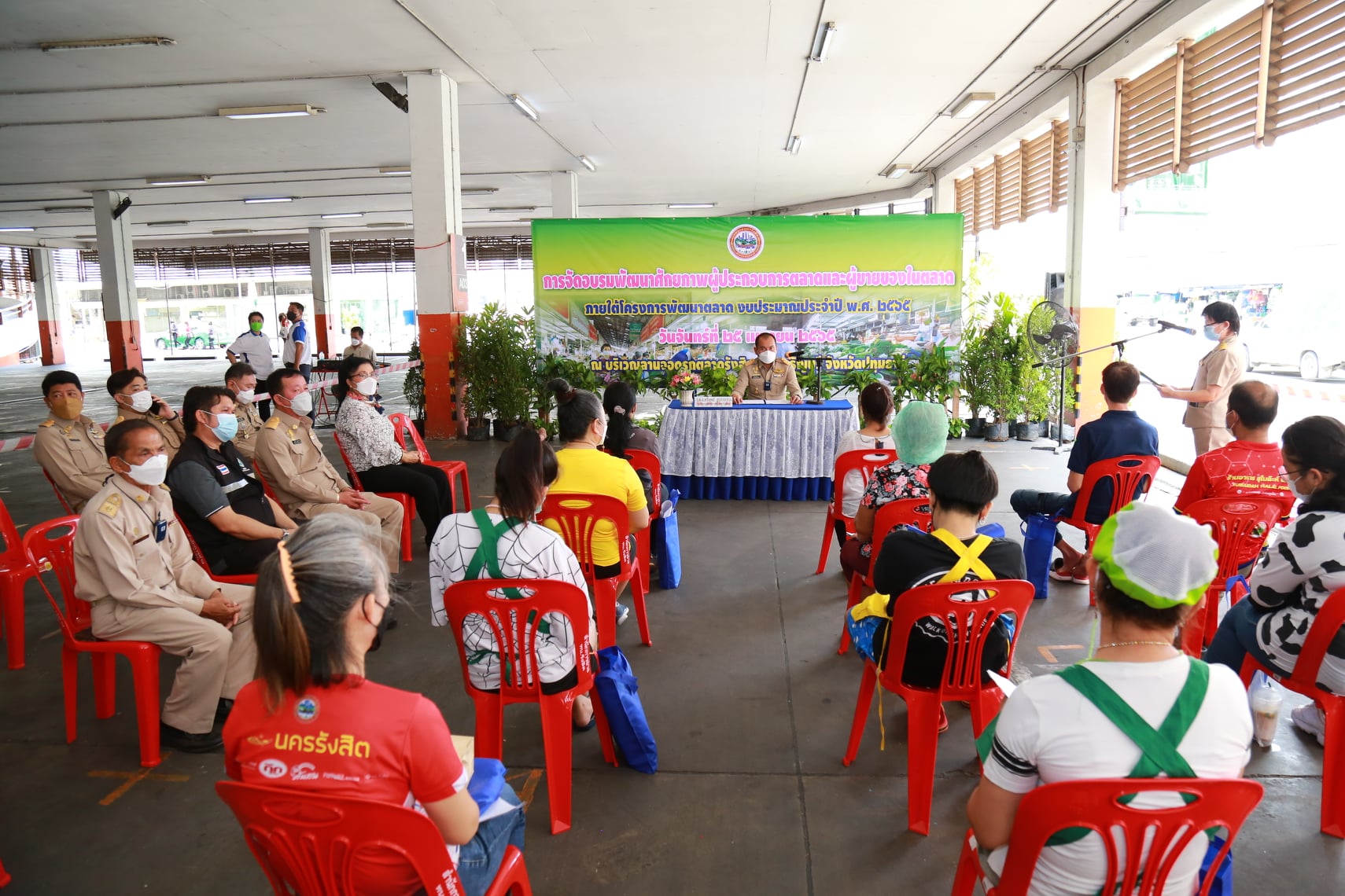 โดยมีวิทยากรให้ความรู้ในเรื่อง สถานการณ์และมาตราการป้องกันโรคระบาดโควิด-19ในตลาด , เกณฑ์มาตรฐานตลาดตามกฎหมายและตลาดสดน่าซื้อ,สุขลักษณะของผู้ขายของและผู้ช่วยขายของในตลาด โดย ดร.ประจวบ นามสกุล นักวิเคราะห์นโยบายและแผนชำนาญการพิเศษ รองหัวหน้ากลุ่มงานพัฒนาอนามัยสิ่งแวดล้อม ศูนย์อนามัยที่ 4 สระบุรี