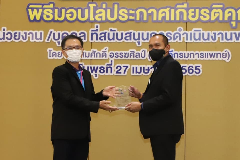 รับมอบโล่ "หน่วยงานที่สนับสนุนการดำเนินงานของ สบยช." จากอธิบดีกรมการแพทย์