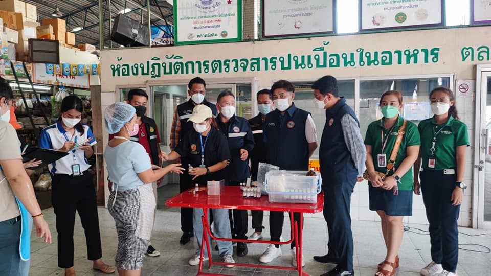 ออกตรวจเฝ้าระวังสุขาภิบาลอาหารในตลาด โดยการตรวจตามหลักเกณฑ์ข้อกำหนดด้านสุขาภิบาลอาหารสำหรับร้านอาหาร (ด้านกายภาพ) และสุ่มตรวจหาโคลิฟอร์มแบคทีเรีย (ด้านชีวภาพ) ได้แก่ มือผู้สัมผัสอาหาร อาหารปรุงสำเร็จพร้อมบริโภค ในตลาด ดังนี้