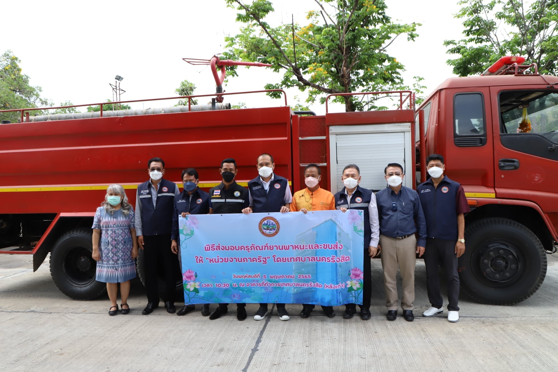 5. รถบรรทุกน้ำ หมายเลขทะเบียน 81-5670 ปทุมธานี มอบให้กับ องค์การบริหารส่วนตำบลบ้านชี จังหวัดลพบุรี จำนวน 1 คัน ณ สำนักงานเทศบาลนครรังสิต (หลังเก่า) ภายในหมู่บ้านรัตนโกสินทร์ 200 ตำบลประชาธิปัตย์ อำเภอธัญบุรี จังหวัดปทุมธานี