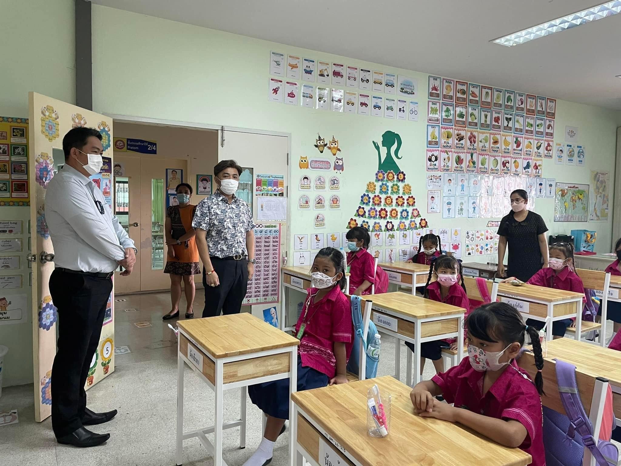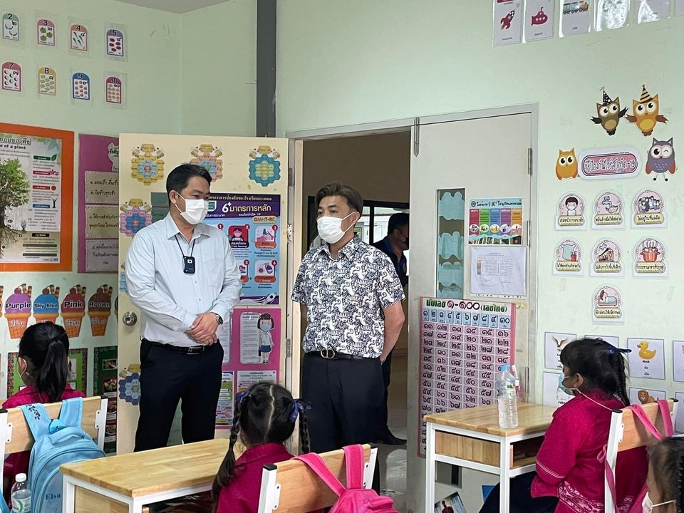 นายชยุต สินพูนภักดิ์ รองนายกเทศมนตรีนครรังสิต ลงตรวจเยี่ยม โรงเรียนดวงกมล ในสังกัดเทศบาลนครรังสิต ตามมาตราการการเฝ้าระวังการแพร่ระบาดขอเชื้อไวรัสโคโรนา 2019 โควิด-19 พร้อมพบปะพูดคุยและให้กำลังใจคุณครู และบุคลากรทางการศึกษาในการเปิดเรียน ภาคเรียนที่ 1 ประจำปีการศึกษา 2565 เมื่อวันที่ 20 พ.ค. 2565