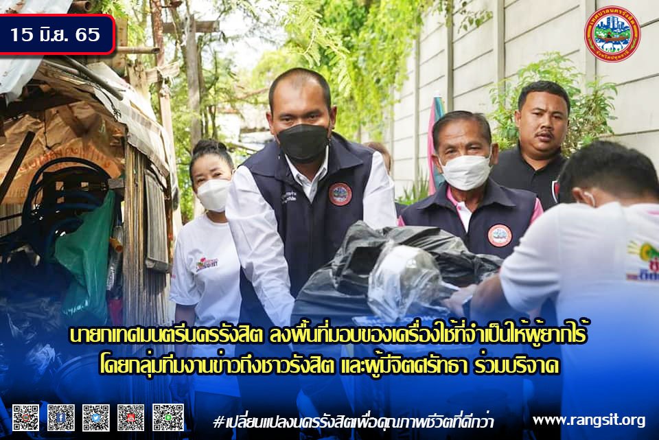 ทั้งนี้ เทศบาลนครรังสิต ขอขอบคุณทีมงานกลุ่มข่าวถึงชาวรังสิต ที่ได้ร่วมกันสนับสนุนสิ่งของที่จำเป็นเพื่อมอบให้กับผู้ยากไร้ทั้งสองท่าน มา ณ โอกาสนี้
