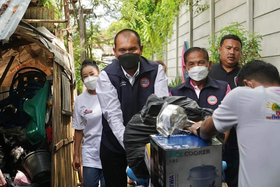 ลงพื้นที่มอบของเครื่องใช้ ที่ใช้สำหรับประจำวัน ข้าวสาร เครื่องนุ่งห่ม และรถเข็นสำหรับหาเลี้ยงชีพ