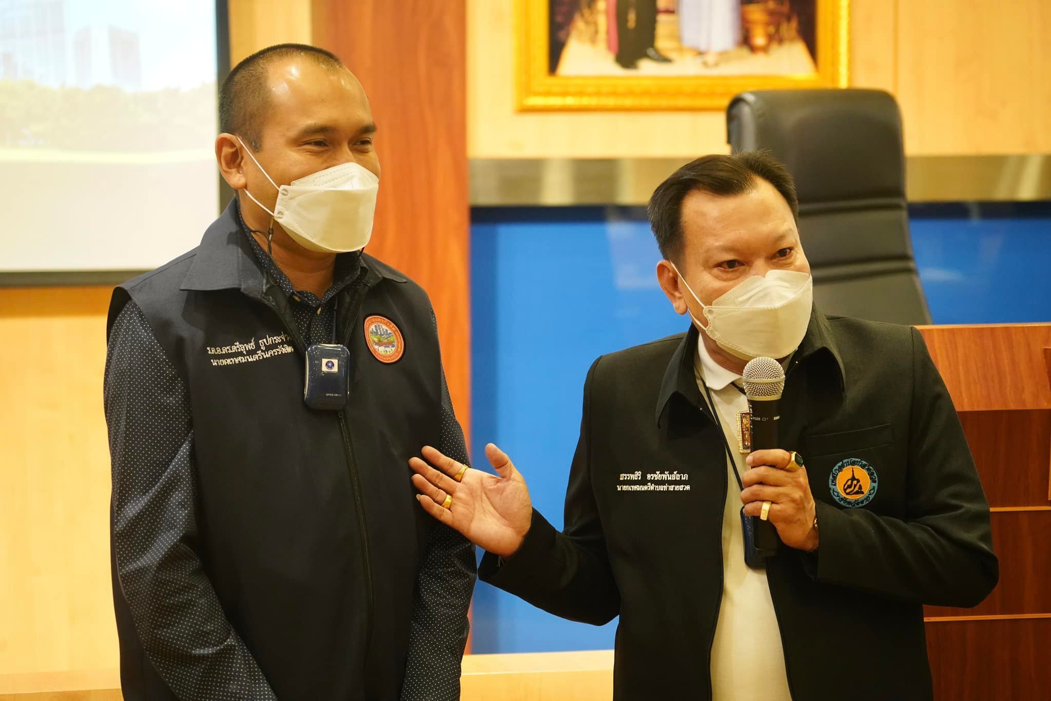 ร้อยตำรวจเอก ดร.ตรีลุพธ์ (นายกโบว์ลิ่ง) ธูปกระจ่าง นายกเทศมนตรีนครรังสิต กล่าวต้อนรับคณะศึกษาดูงานจากเทศบาลตำบลท่าสายลวด อำเภอแม่สอด จังหวัดตาก คณะผู้บริหาร และคณะกองทุนแผนสุขภาพระดับตำบล เนื่องในโอกาสเข้าศึกษาดูงานแลกเปลี่ยนเรียนรู้กับกองทุนหลักประกันสุขภาพในด้านต่างๆ การจัดทำแผนพัฒนากองทุนฯ การพัฒนายุทธศาสตร์ในการดำเนินงานของกองทุนฯ และการดำเนินงานของศูนย์พัฒนาและฟื้นฟูคุณภาพผู้สูงอายุ (LTC) ณ ห้องประชุมสภา สำนักงานเทศบาลนครรังสิต เมื่อวันที่ 23 มิ.ย. 2565