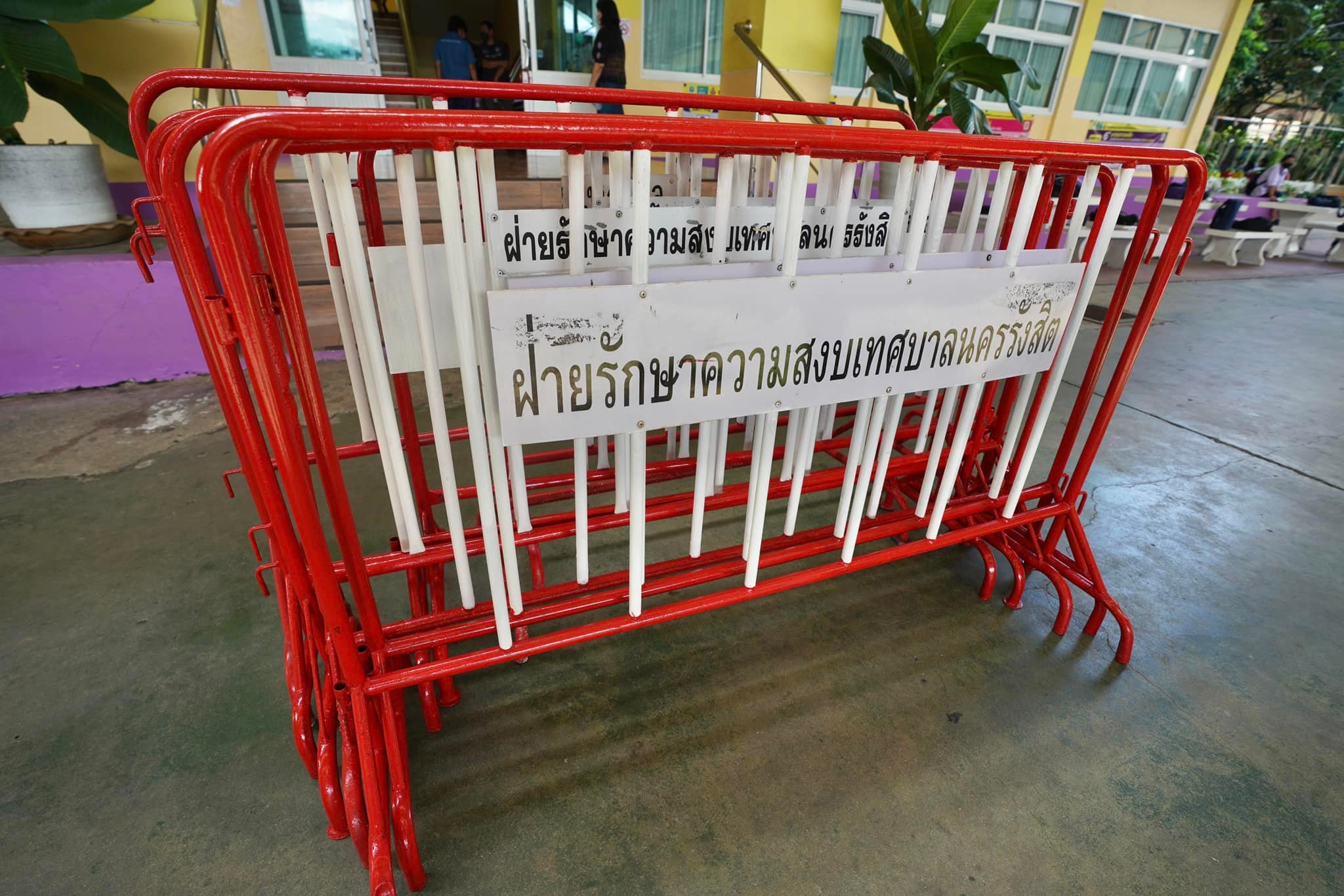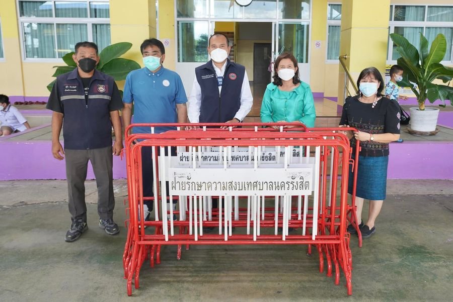 ร้อยตำรวจเอก ดร.ตรีลุพธ์ (นายกโบว์ลิ่ง) ธูปกระจ่าง นายกเทศมนตรีนครรังสิต มอบแผงกั้นจราจรให้กับโรงเรียนชุมชนประชาธิปัตย์วิทยาคาร