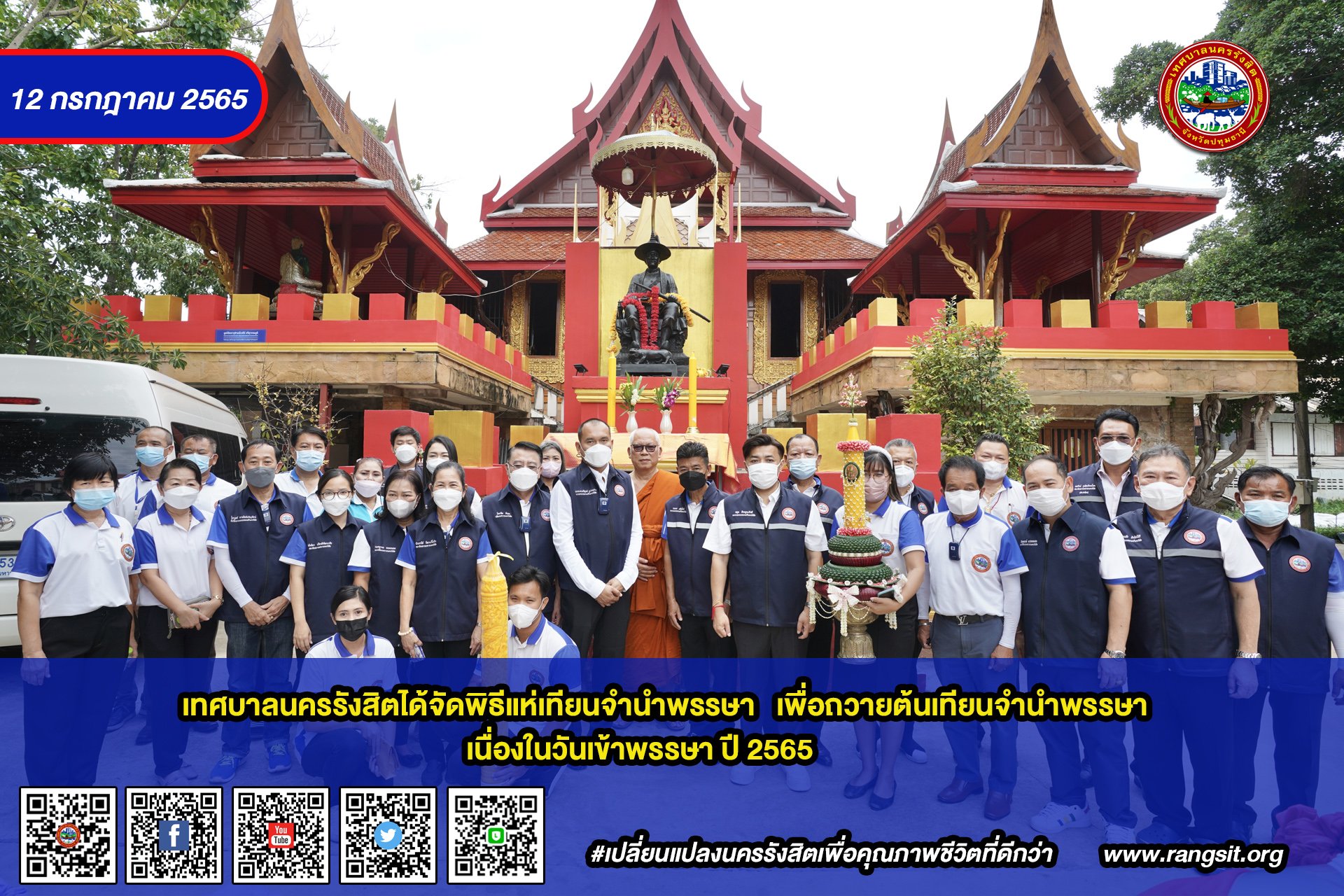 เทศบาลนครรังสิต จัดพิธีแห่เทียนจำนำพรรษา ประจำปี 2565 เพื่อถวายต้นเทียนจำนำพรรษา เนื่องในวันเข้าพรรษา ปี 2565