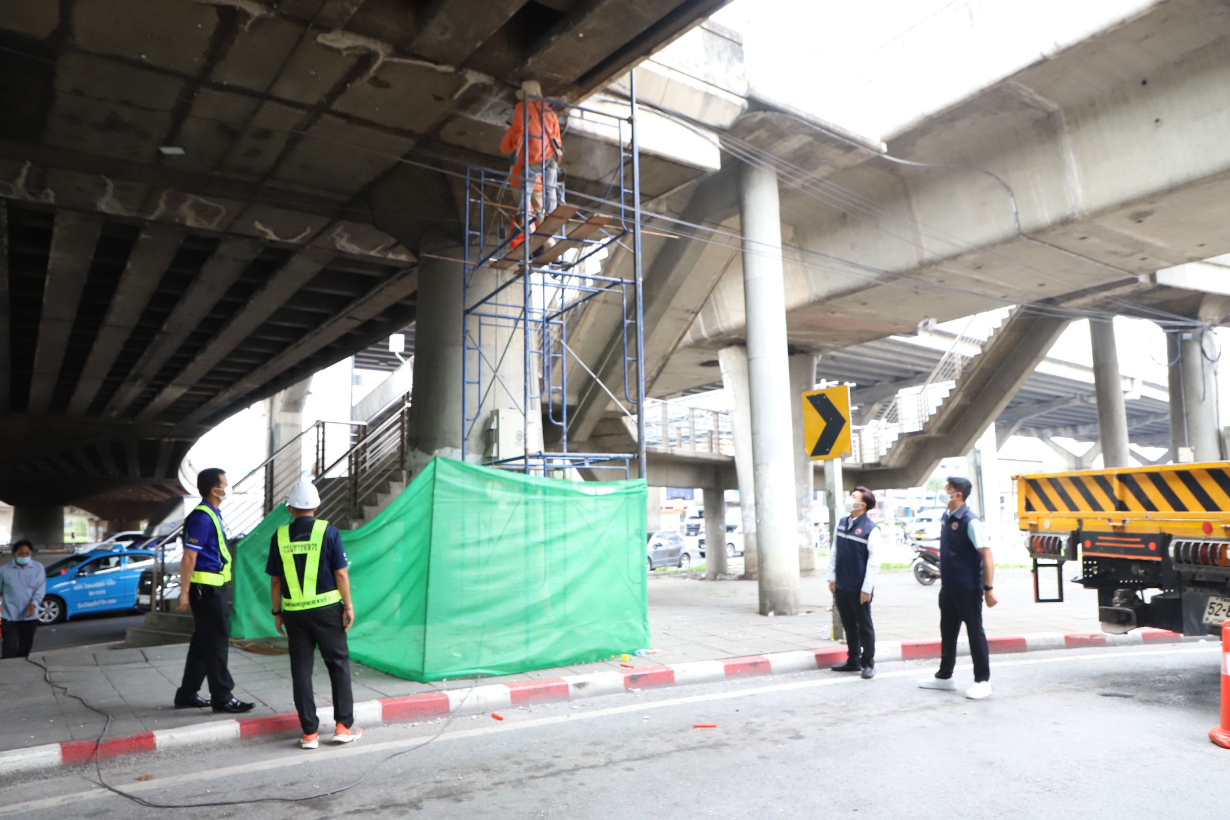 ลงพื้นที่ตรวจสอบการซ่อมแซมคานสะพานต่างระดับ ที่เศษปูนล่วงหล่นใต้สะพานต่างระดับหน้าตลาดรังสิต