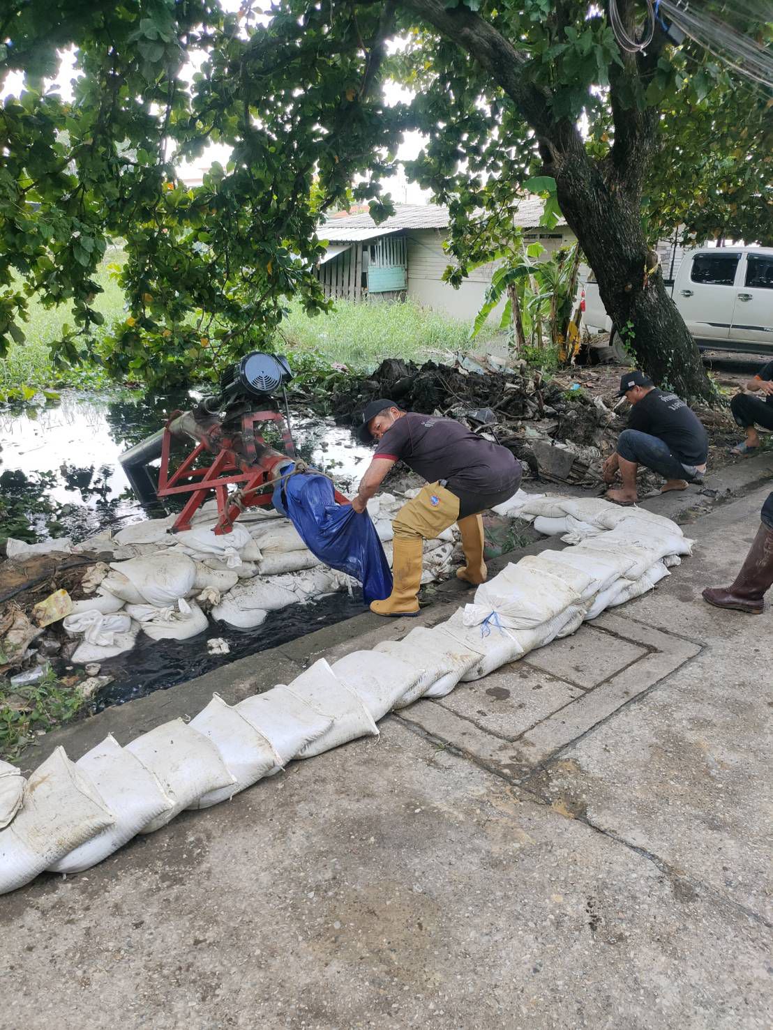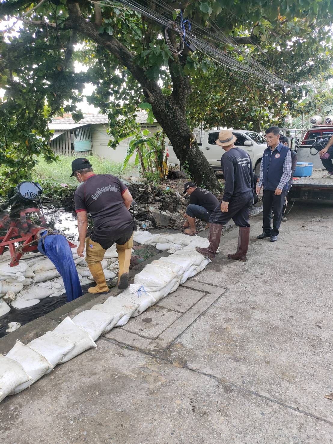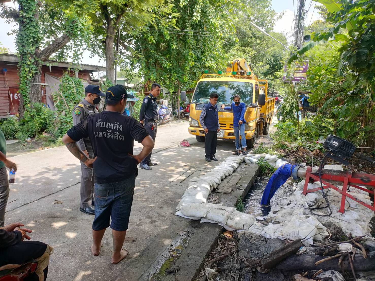 เทศบาลนครรังสิต ออกติดตั้งเครื่องสูบน้ำ รวมถึงนำกระสอบทรายลงกั้นโดยรอบเครื่องสูบน้ำ