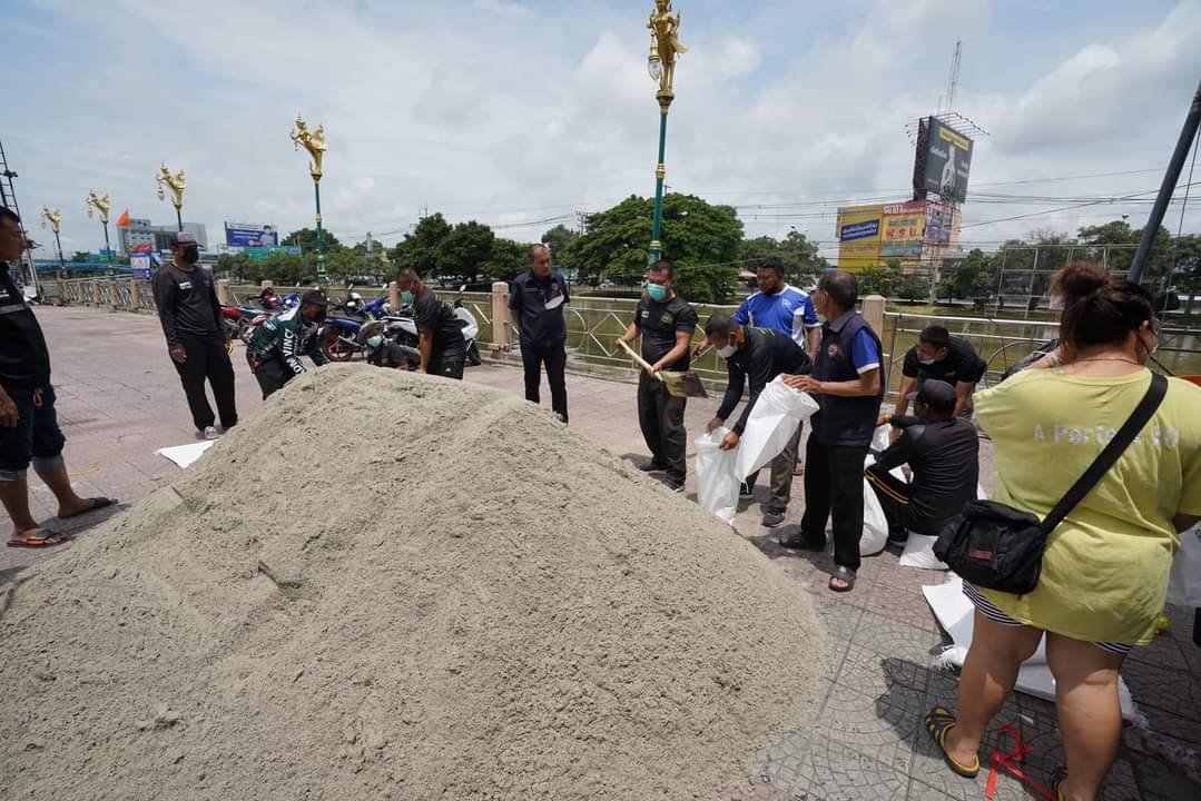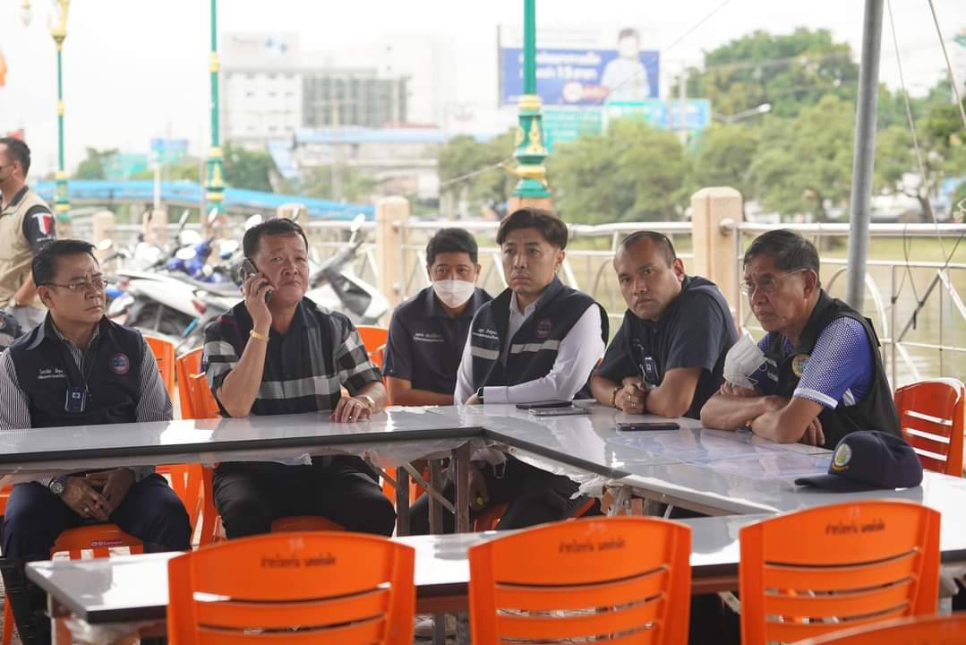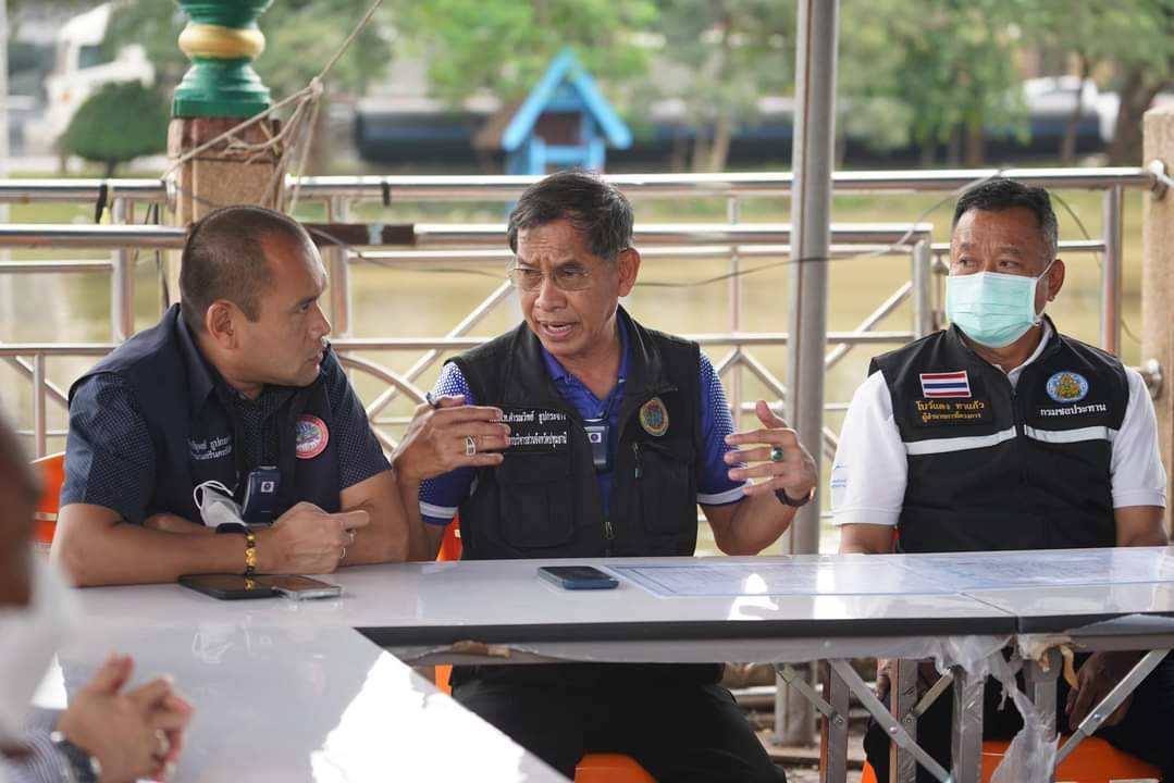 วันที่ 7 กันยายน 2565 ที่ริมเขื่อนสะพานแดง ตำบลประชาธิปัตย์ อำเภอธัญบุรี จังหวัดปทุมธานี พล.ต.ท.คำรณวิทย์ ธูปกระจ่าง นายก อบจ.ปทุมธานี พร้อมด้วย ร้อยตำรวจเอก ดร.ตรีลุพธ์ ธูปกระจ่าง นายกเทศมนตรีนครรังสิต นายโบว์แดง ทาแก้ว ผู้อำนวยการโครงการส่งน้ำและบำรุงรักษารังสิตใต้ กรมชลประทาน และเจ้าหน้าที่ที่เกี่ยวข้อง ร่วมประชุมหารือหาเหตุน้ำท่วมพร้อมแนวทางแก้ไข เนื่องจากเมื่อช่วงเย็นเมื่อวาน และตลอดทั้งคืนฝนเทกระหน่ำไม่ต่างจากพื้นที่กรุงเทพฯ เลยทำให้ถนนสายหลักน้ำท่วมขัง ระดับ 30-50 เซนติเมตร รวมถึงในพื้นที่ชุมชนต่างๆ โดยเฉพาะถนนริมเขื่อนสะพานแดง ถนนที่อยู่ด้านข้างเมเจอร์ รวมถึงตามซอย และชุมชนในเขตพื้นที่ สำหรับสถานการณ์เช้าวันนี้ ระดับน้ำจะลดลง แต่หลายชุมนุม และถนนบางเส้นยังมีน้ำท่วม โชคดีที่ไม่มีฝนตก แต่ท้องฟ้ายังขมุกขมัว นอกจากนี้ยังพบปัญหาที่ทำให้พื้นที่รังสิต น้ำลดช้า เพราะต้องรับน้ำ ทั้งจากจังหวัดนครนายก คลองระพีพัฒน์ จังหวัดพระนครศรีอยุธยา และเขต กทม. ทั้ง สายไหม ดอนเมือง หลักหก ทำให้คลองสายหลัก คลองรังสิตประยุรศักดิ์ น้ำเต็มเอ่อล้นตลิ่ง และยังพบปัญหาท่อระบายน้ำในแต่ชุมชนที่อยู่ริมคลอง เสมอกับระดับน้ำในคลอง จึงไม่สามารถระบายน้ำได้ ต้องมีการติดตั้งเครื่องสูบน้ำเสริมตลอดแนวคลอง แต่ไม่สามารถระบายน้ำออกสู่แม่เจ้าพระยาได้ เนื่องจากบริเวนสถานีสูบน้ำกึ่งถาวร ปากคลองรังสิต เขตอำเภอเมือง ถนนสายซ่อมสร้าง มีเครื่องสูบน้ำ 20 เครื่อง แต่ใช้ได้ 10 เครื่อง ซึ่งตรงนี้ถือเป็นหัวใจหลัก ที่จะสูบน้ำออกเจ้าพระยา แต่กลับดำเนินการได้ไม่เต็มที่ เนื่องจากบริเวณชุมชนสะพานแดงเป็นจุดที่ต่ำที่สุด จึงจะทำตรงนี้เป็นศูนย์บัญชาการรับเรื่องราว หากตรงนี้ไม่ท่วมตรงอื่นก็ไม่ท่วมแล้ว จะมีการนำทรายมาลงเพื่อให้ประชาชนนำไปใช้กรอกกระสอบทราย โดยร้อยตำรวจเอก ดร.ตรีลุพธ์ ธูปกระจ่าง นายกเทศมนตรีนครรังสิตอยู่พื้นที่ตรงนี้ตั้งแต่เมื่อคืน ซึ่งน้ำมาจากกรุงเทพฯและจ.นครนายกมารวมที่รังสิต เมื่อฝนตกนำให้น้ำสูงขึ้นมาอีก น้ำจึงมารวมอยู่ที่นี่ เราจึงขอความร่วมมืออย่าพึ่งผันน้ำมาที่เรา หากวันนี้มีฝนตกมาอีก แล้วยังผลันน้ำออกไปไม่ได้ อย่างไรก็ท่วมอีก ซึ่งกรมชลประทานและแขวงทางหลวง ซึ่งทางเทศบาลยินดีที่จะช่วย วันนี้เทศบาลนครรังสิตได้รับความร่วมมือกับกรมชลประทาน ที่มาร่วมมาหารือกับ ท่านนายก อบจ.ปทุมธานี แต่ทางแขวงทางหลวงไม่ได้มา เทศบาลนครรังสิตขอความกรุณาช่วยเหลือกัน มาบูรณาการร่วมกัน โดยที่ถนนยังไม่มีท่อที่จะร