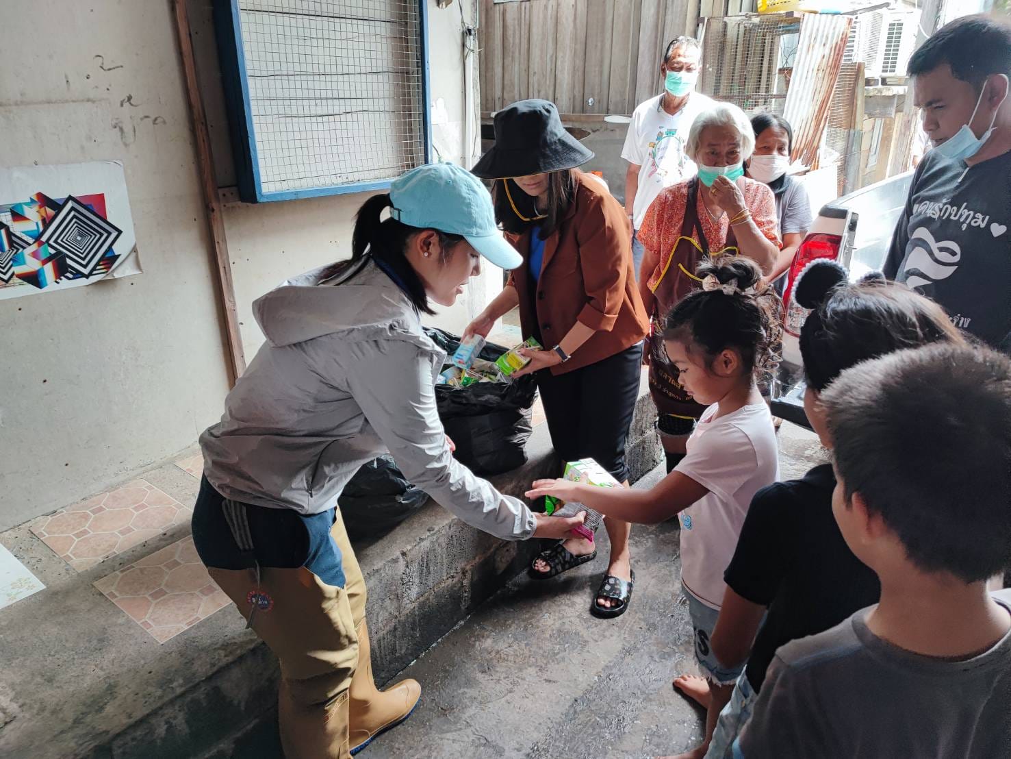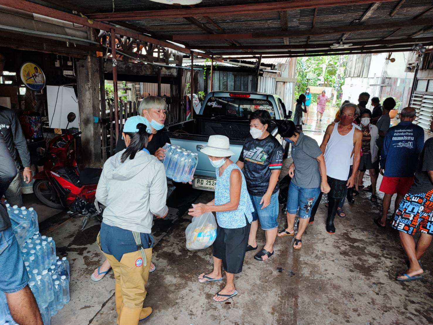 ลงพื้นที่มอบถุงยังชีพและน้ำดื่ม ให้กับประชาชนผู้ประสบภัยน้ำท่วม บริเวณชุมชนชลประทานรังสิต