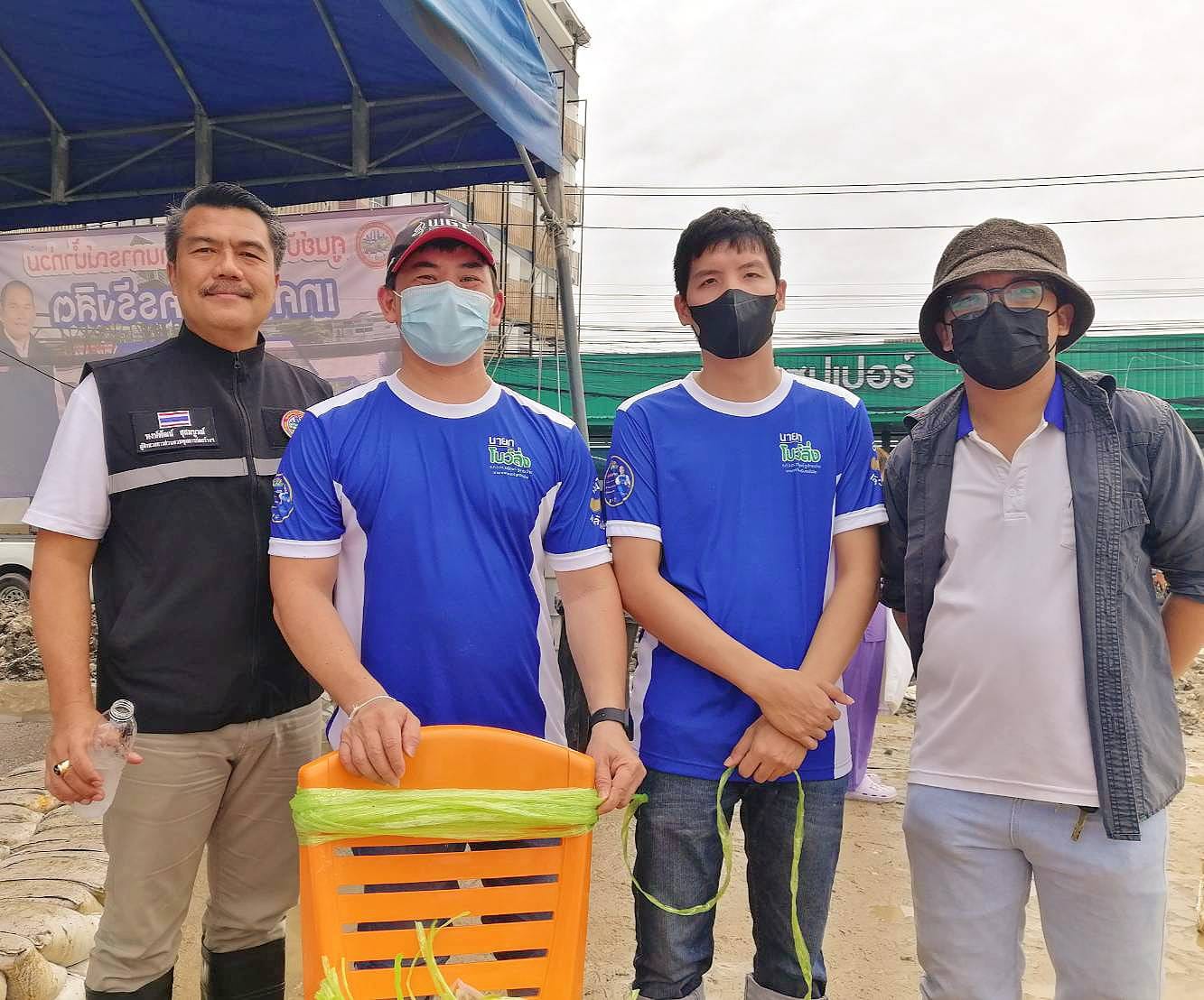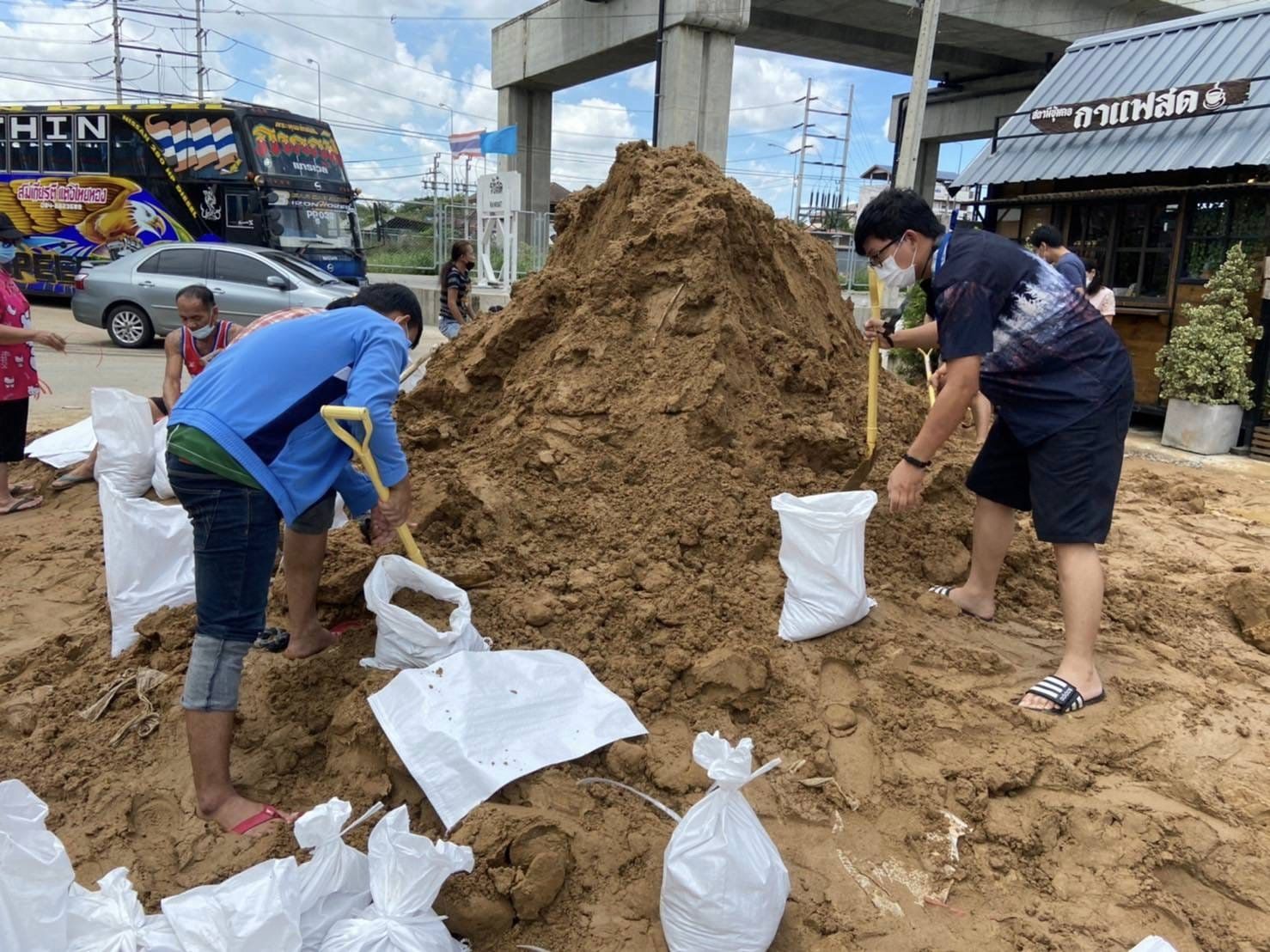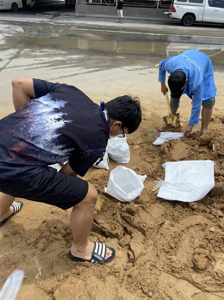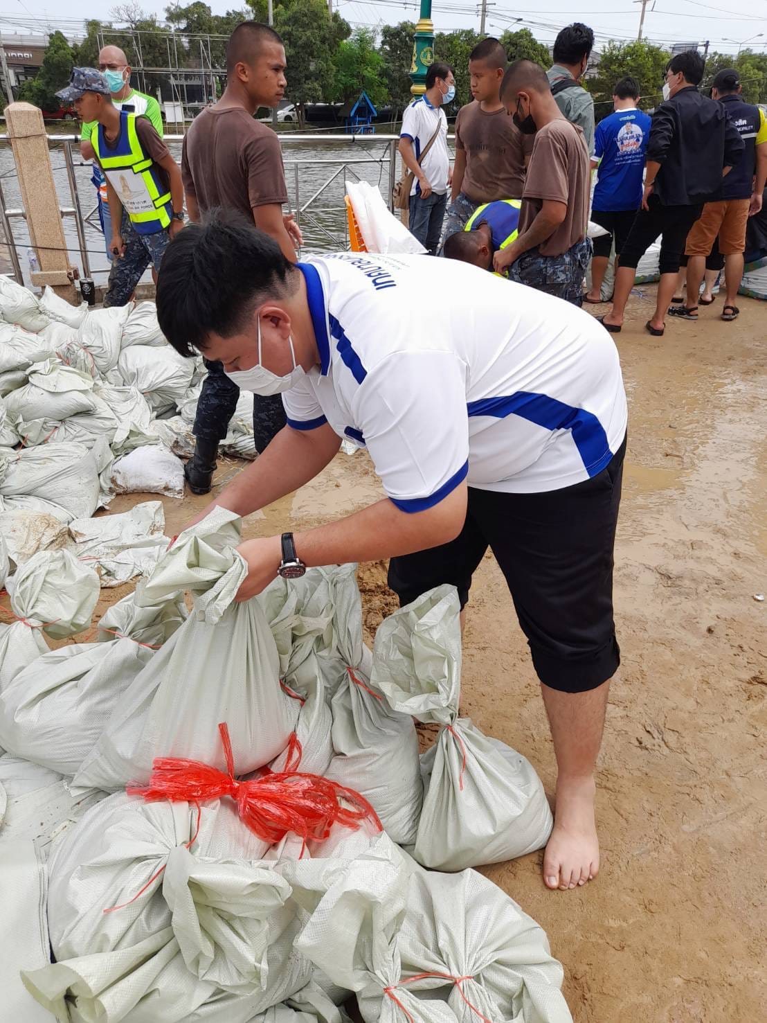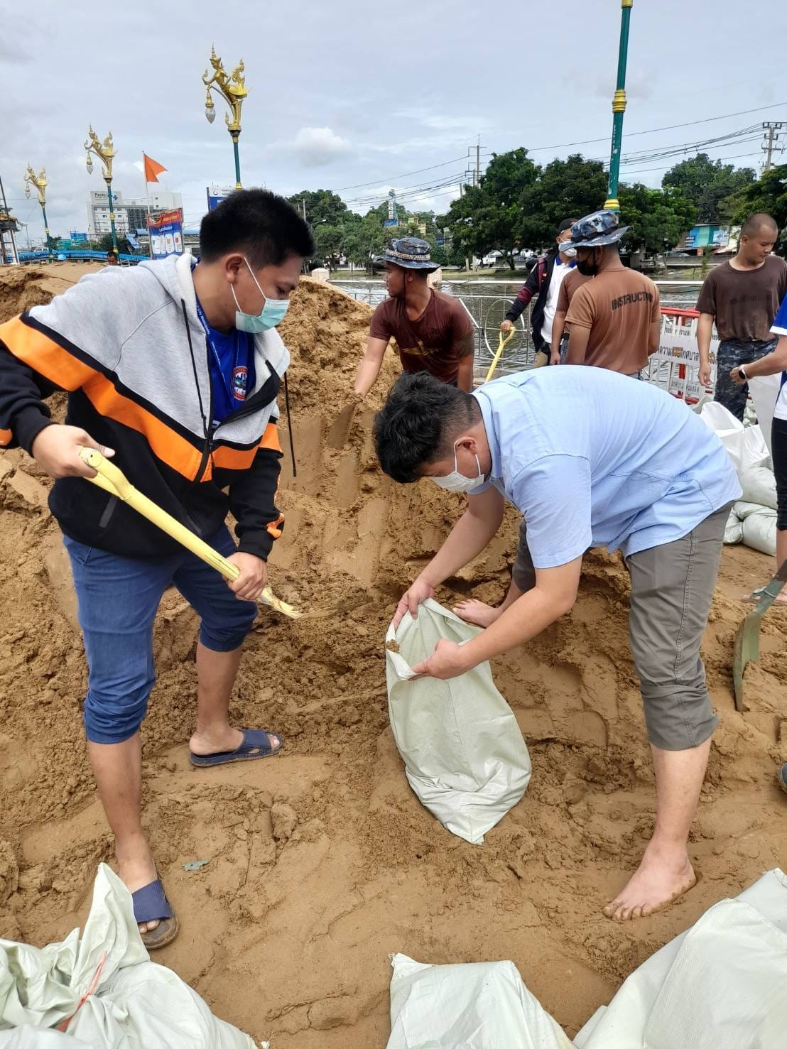 ลงปฏิบัติหน้าที่กรอกทรายใส่กระสอบ เพื่อมอบให้กับประชาชนที่ได้รับผลกระทบจากน้ำท่วมนำไปใช้กั้นเพื่อป้องกันน้ำ