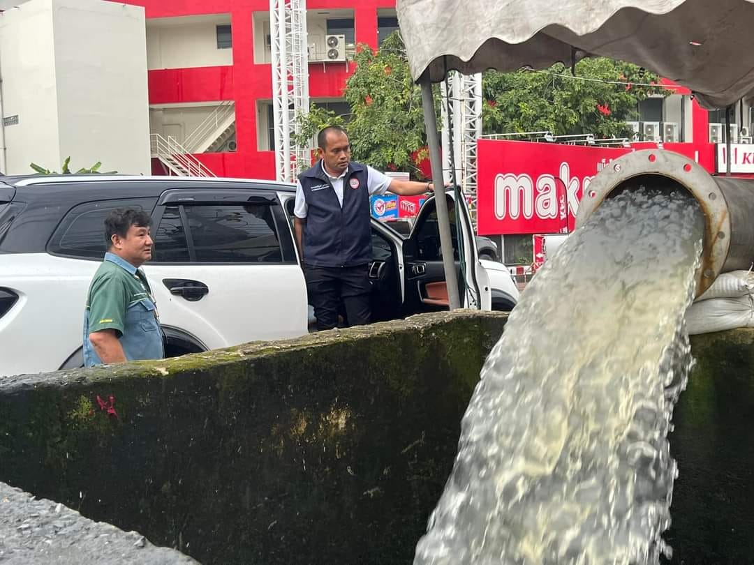 ลงพื้นที่สำรวจระดับน้ำหลังมีฝนตกลงมาเพิ่มเติม ได้เร่งการระบายน้ำและเสริมคันดินป้องกันน้ำท่วม