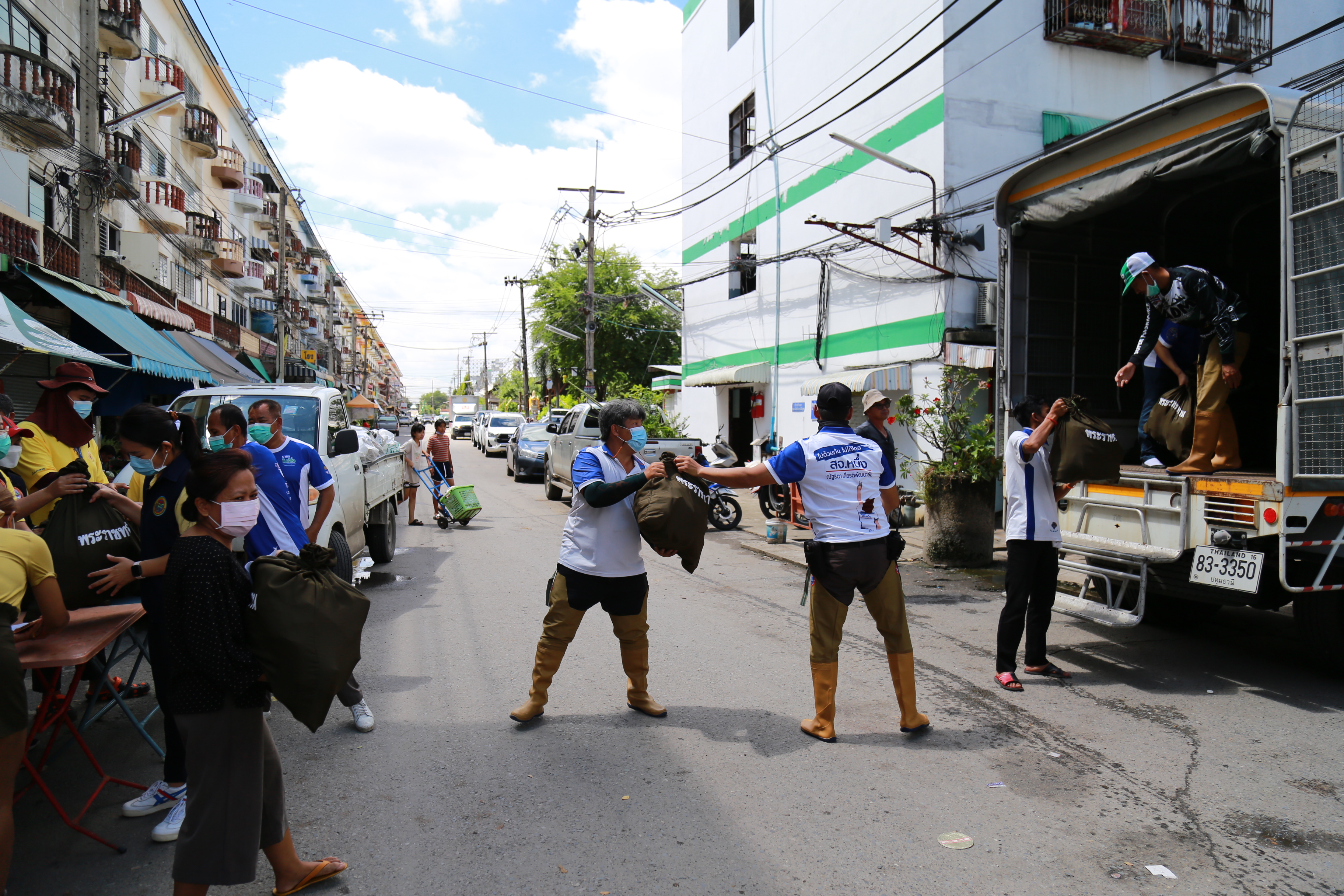 นำถุงยังชีพพระราชทาน ไปแจกจ่ายให้กับประชาชนที่ได้รับผลกระทบจากสถานการณ์อุทกภัย