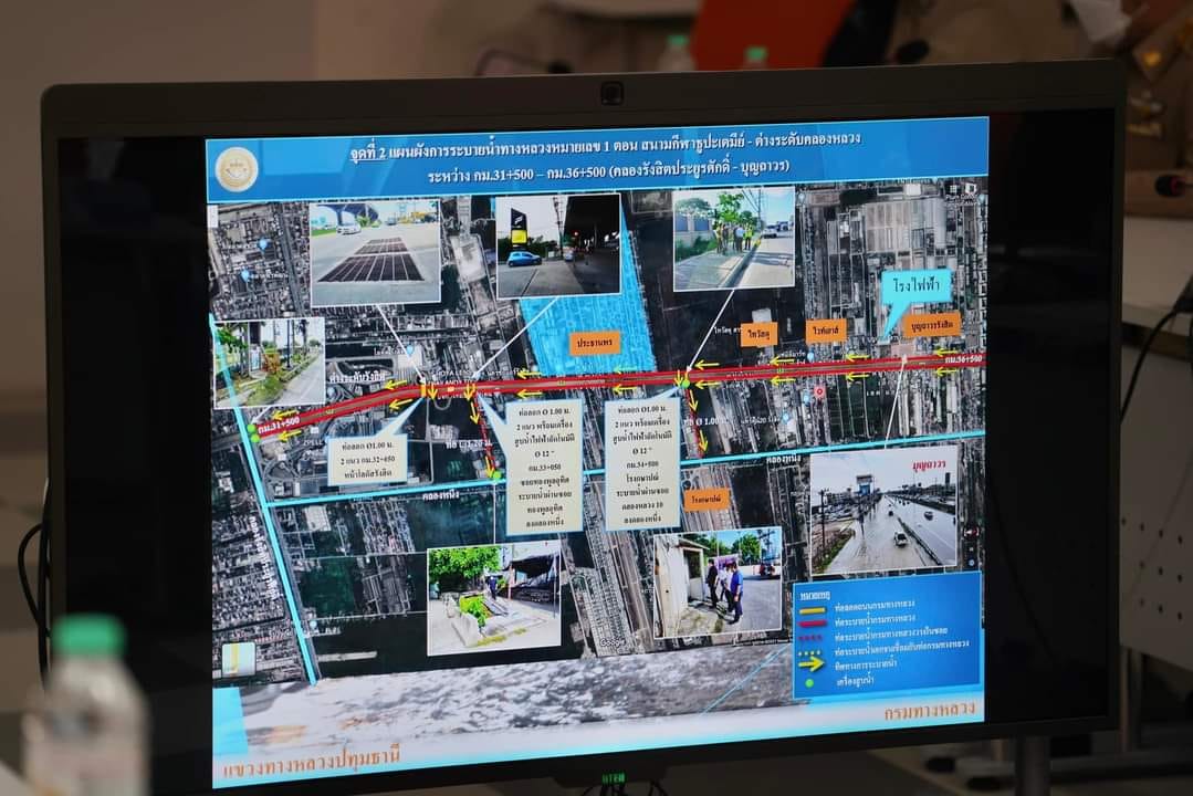 ประชุมการแก้ปัญหาน้ำท่วม เร่งการตีเส้นจราจรบนท้องถนน และเร่งขอคืนพื้นที่เส้นทางจราจรการจากการวางท่อปะปาในเขตพื้นที่นครรังสิต