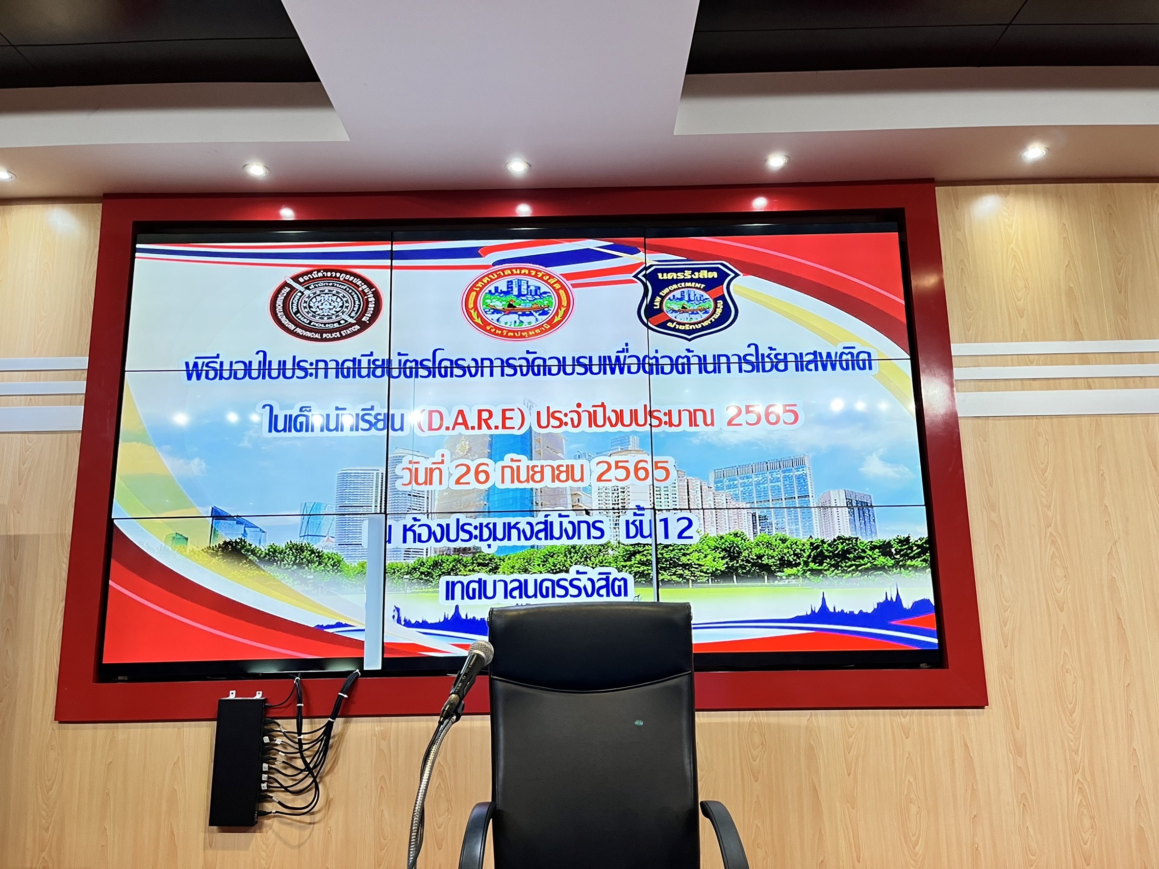 วันที่ ๒๖ กันยายน ๒๕๖๕ ณ ห้องประชุมหงส์มังกร เทศบาลนครรังสิต โดย ฝ่ายรักษาความสงบ จัดโครงการอบรมเพื่อต่อต้านการใช้ยาเสพติดในนักเรียน (D.A.R.E.) ในระดับชั้นประถมศึกษาปีที่ ๕ ปีการศึกษา ๑/๒๕๖๕ ประจำปีงบประมาณ พ..๒๕๖๕ โดยจัดให้มีการเรียนการสอนในเด็กนักเรียนชั้นประถมศึกษาปีที่ ๕ ให้กับโรงเรียนรังสฤษฎ์, โรงเรียนธัญวิทย์ โรงเรียนบรรจบรักษ์,โรงเรียนแก้วสว่าง,โรงเรียนทิพพากรวิทยาการ โรงเรียนอุดมวิทยุ และ โรงเรียนบริบูรณ์ศิลป์รังสิต รวม ๗ โรงเรียน โดยมีวิทยากรจากสถานีประตูน้ำจุฬาลงกรณ์ผู้บรรยายให้ความรู้ #เปลี่ยนแปลงนครรังสิตเพื่อคุณภาพชีวิตที่ดีกว่า #มุ่งมั่นทุ่มเทพัฒนาเพื่อนครรังสิตบ้านเรา #เทศบาลนครรังสิต