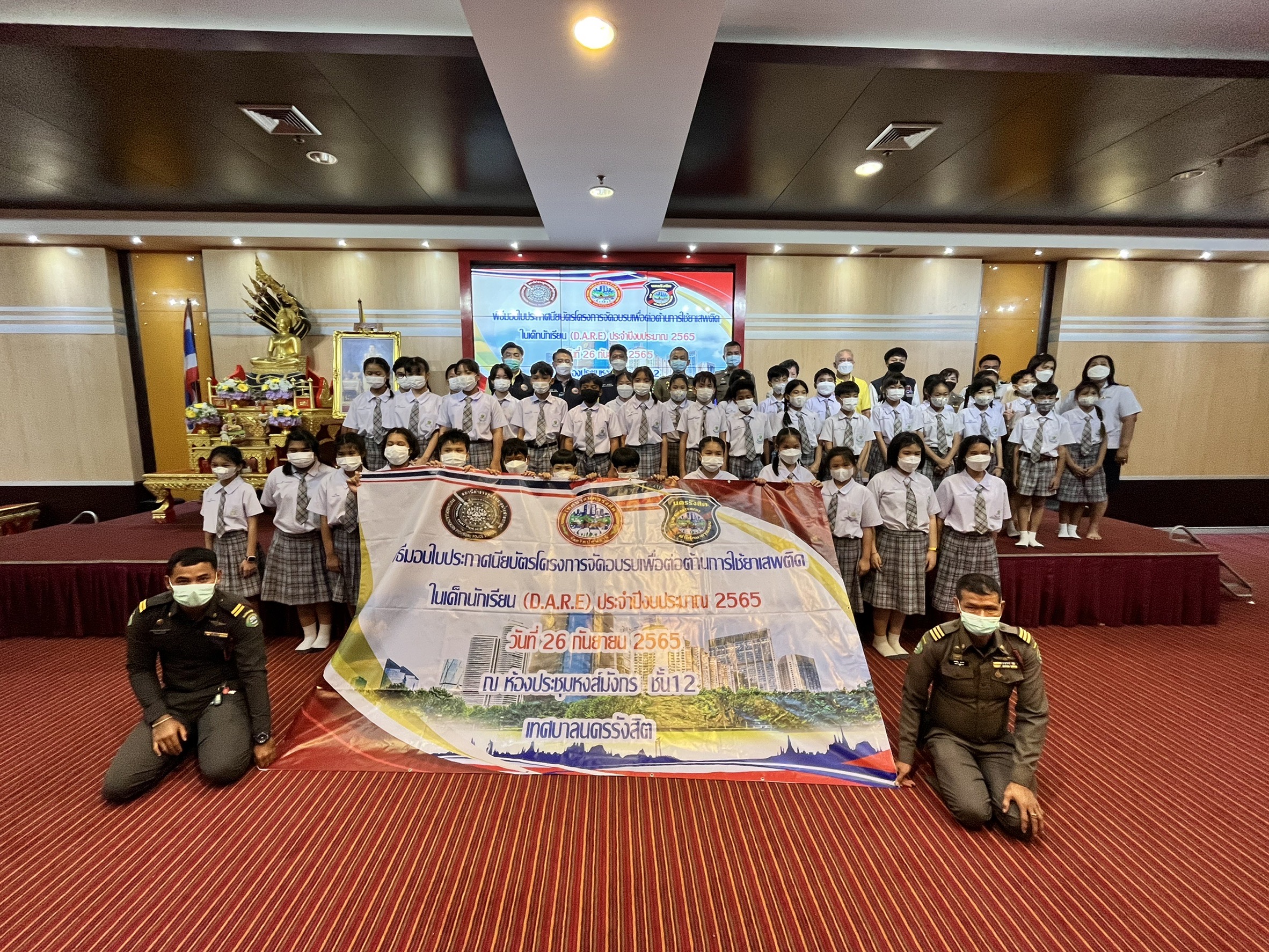 พิธีมอบใบประกาศนียบัตรแก่เด็กนักเรียนผู้ผ่านการอบรม โครงการจัดอบรมเพื่อต่อต้านการใช้ยาเสพติดในเด็กนักเรียน (D.A.R.E.)