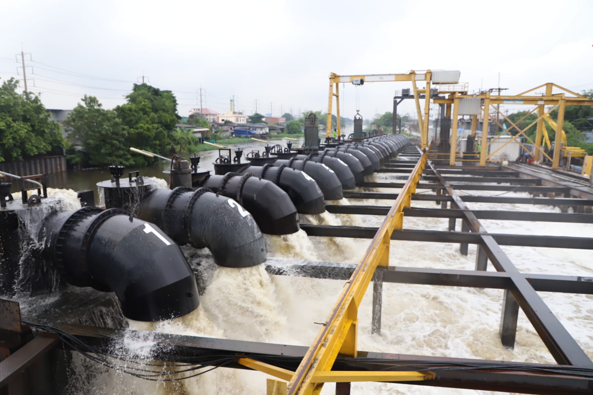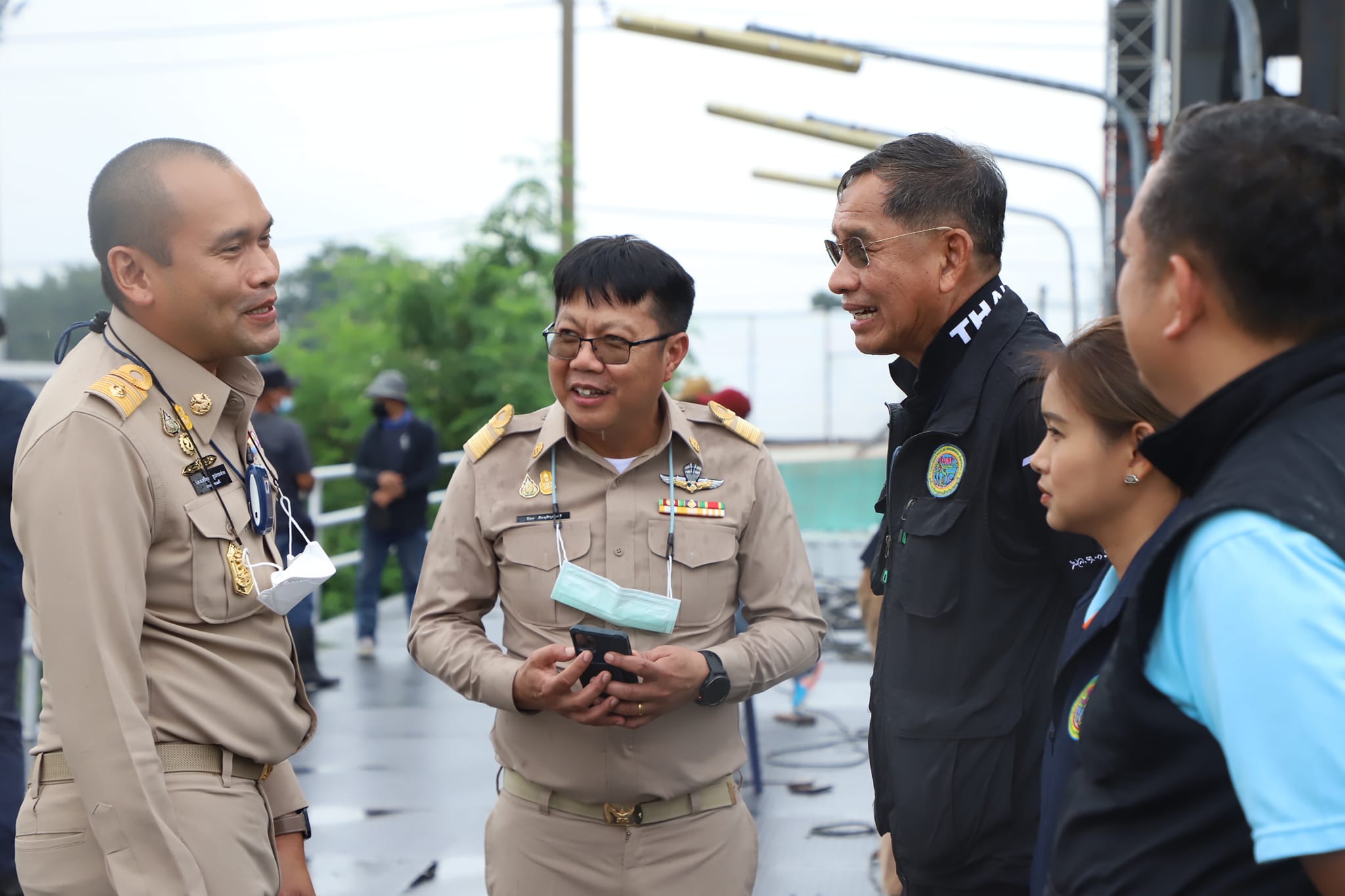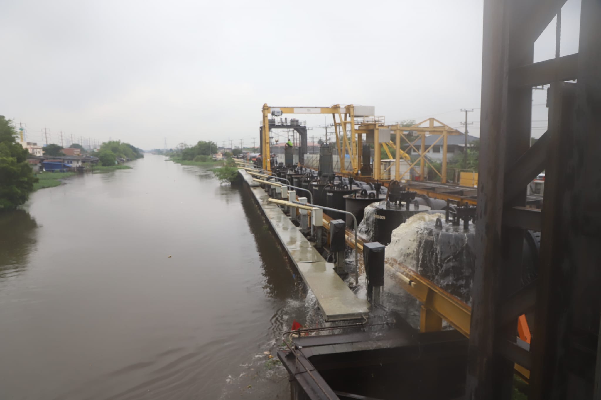 ลงพื้นที่ตรวจดูระดับน้ำและการระบายน้ำบริเวณประตูระบายน้ำและสถานีสูบน้ำกึ่งถาวรปากคลองรังสิต