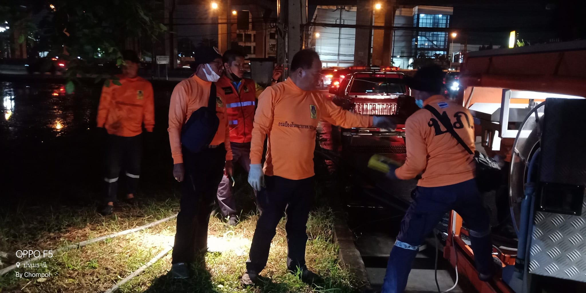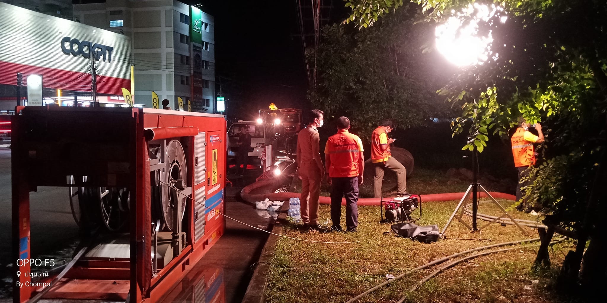 ดำเนินการเร่งระบายน้ำในพื้นผิวจราจรบริเวณสะพานกลับรถ(ตัวเอส) ฝั่งศูนย์การค้าฟิวเจอร์พาร์ค