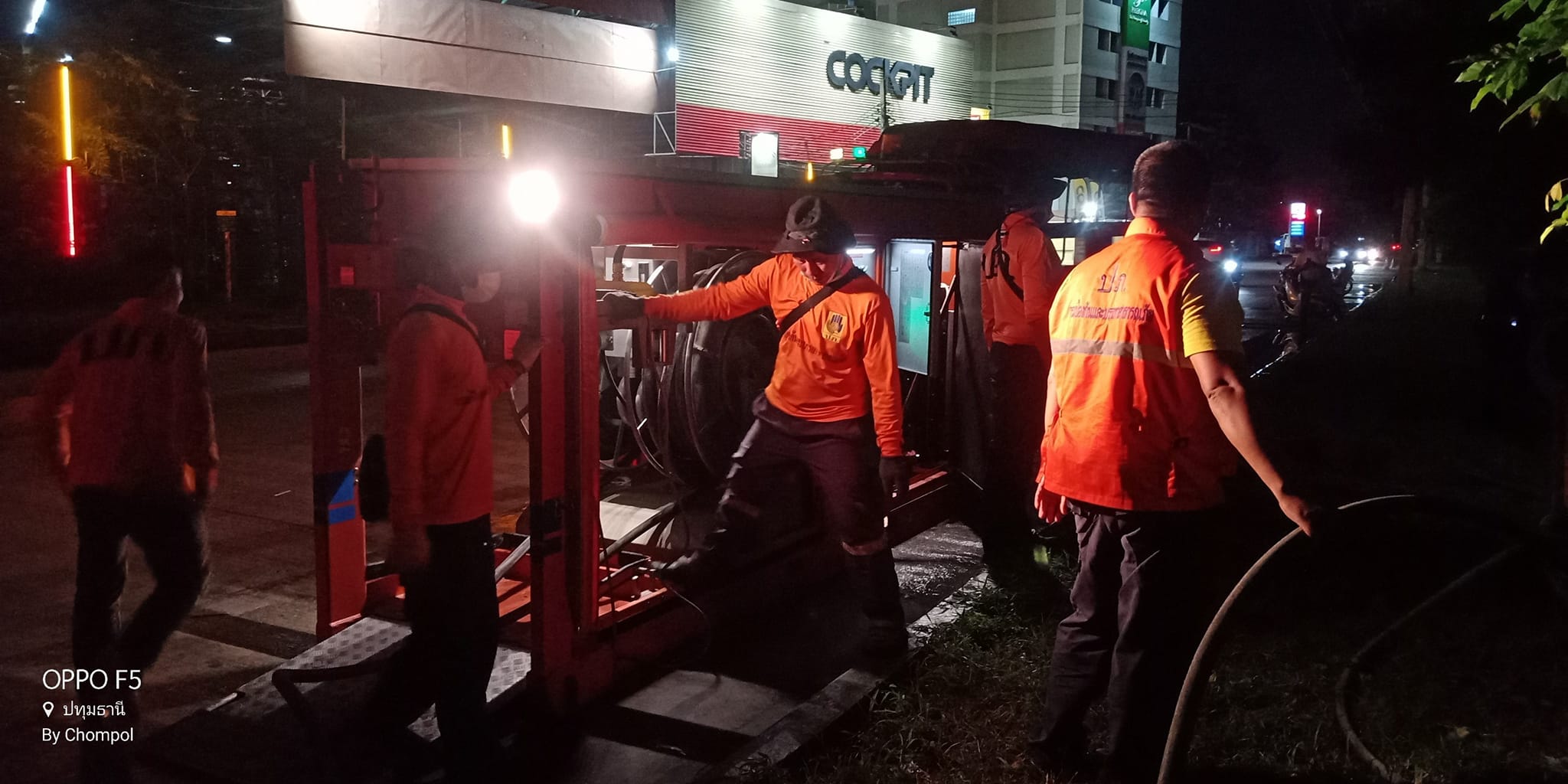 วันที่ 26 กันยายน 2565 เทศบาลนครรังสิต ขอขอบคุณ สำนักงานป้องกันและบรรเทาสาธารณภัยจังหวัดปทุมธานี (ปภ.) ที่สนับสนุนรถยนต์บรรทุกติดตั้งเครื่องสูบน้ำระยะไกล เพื่อดำเนินการเร่งระบายน้ำในพื้นผิวจราจรบริเวณสะพานกลับรถ(ตัวเอส) ฝั่งศูนย์การค้าฟิวเจอร์พาร์ค #เปลี่ยนแปลงนครรังสิตเพื่อคุณภาพชีวิตที่ดีกว่า #มุ่งมั่นทุ่มเทพัฒนาเพื่อนครรังสิตบ้านเรา #เทศบาลนครรังสิต