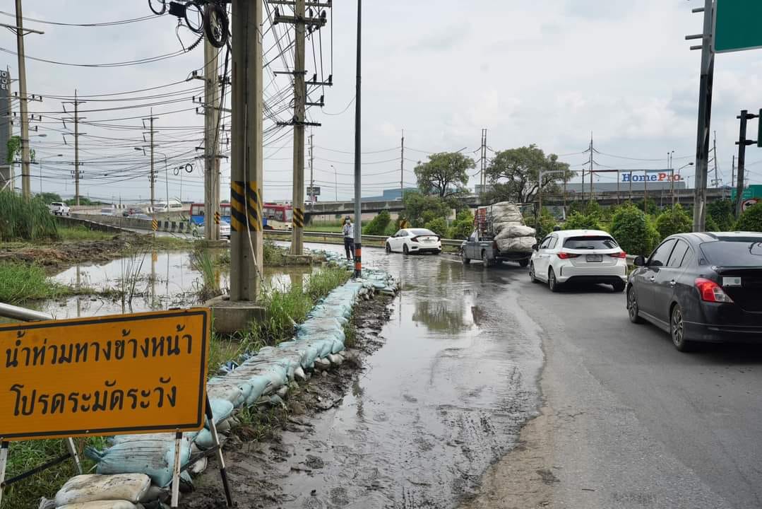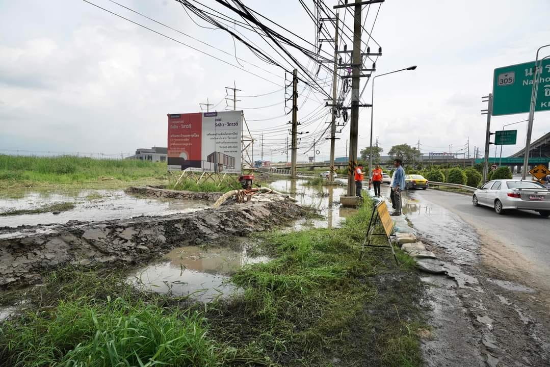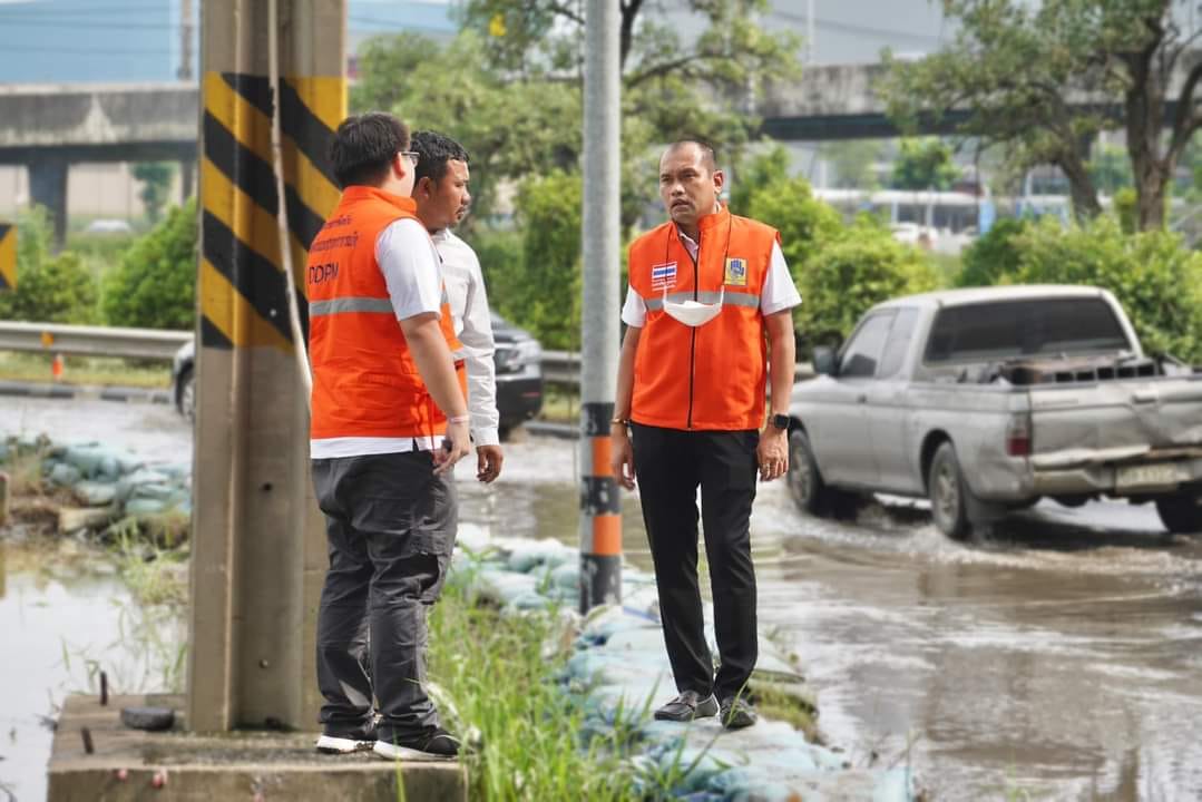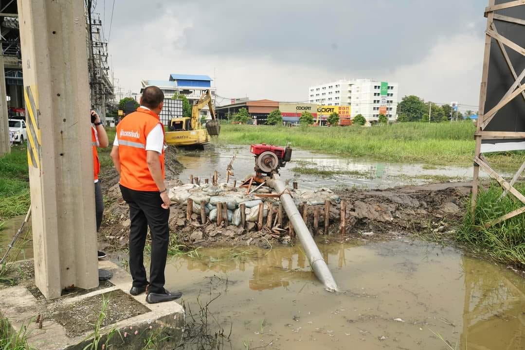 ลงพื้นที่ตรวจสอบการดำเนินงานสร้างคันดินป้องกันน้ำท่วมขัง พร้อมระบายน้ำออกจากสะพานกลับรถ(ตัวเอส)