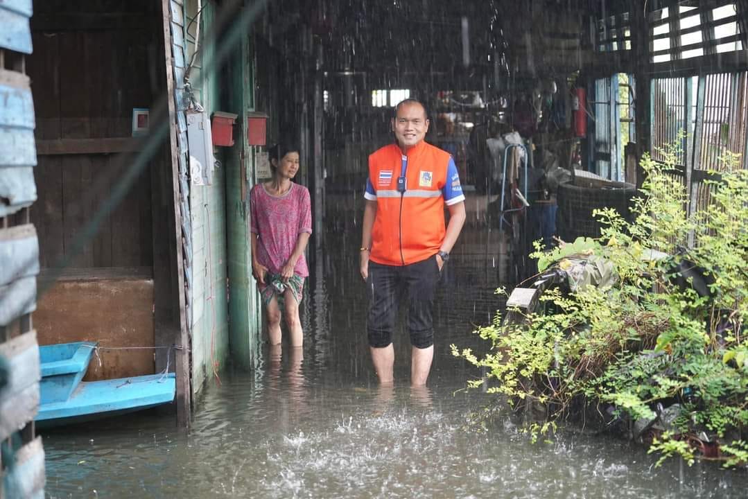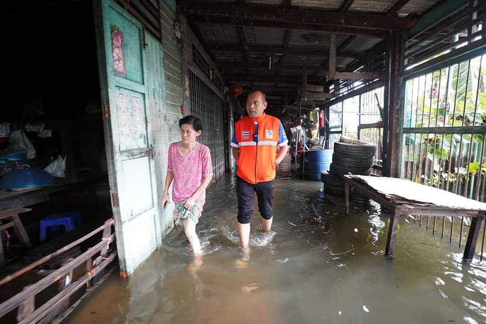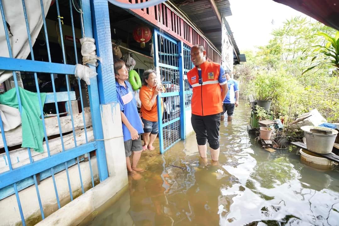 ลงพื้นที่สำรวจระดับน้ำในเขตพื้นที่เทศบาลนครรังสิต บริเวณชุมชนที่น้ำท่วมขัง เพื่อเร่งแก้ไข