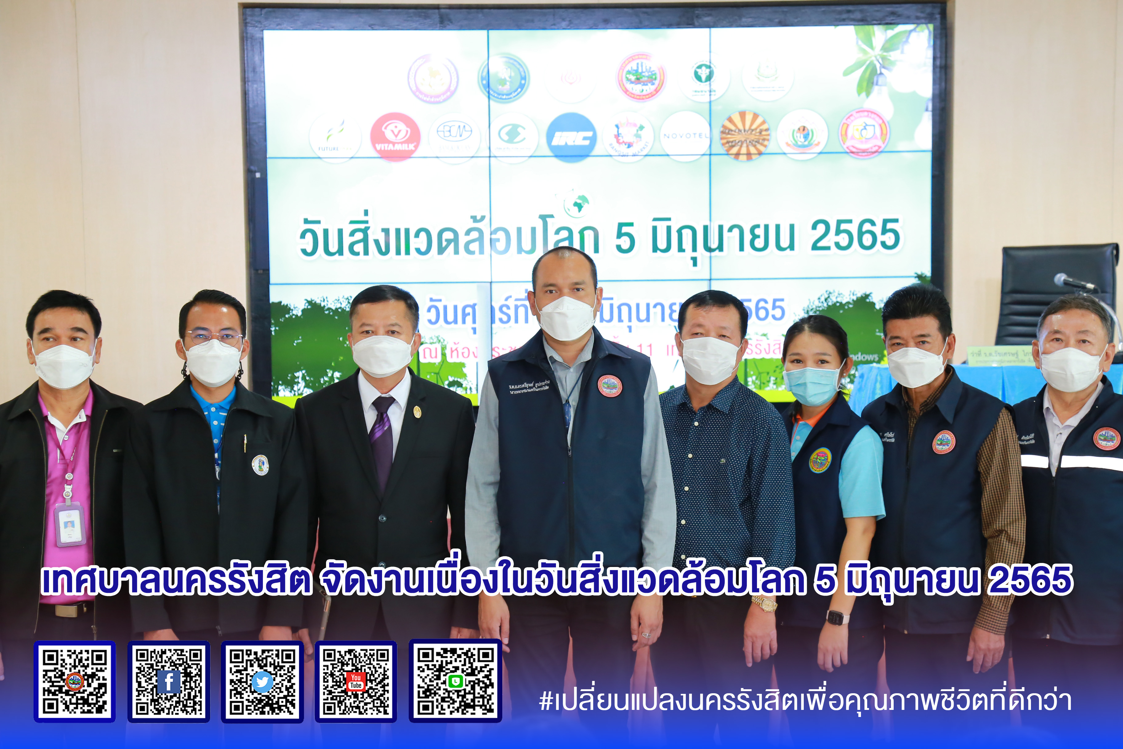 ร้อยตำรวจเอก ดร.ตรีลุพธ์ ธูปกระจ่าง นายกเทศมนตรีนครรังสิต เป็นประธานในพิธีเปิดงานวันสิ่งแวดล้อมโลก 5 มิถุนายน 2565 ภายใต้โครงการรังสิตรักษ์สิ่งแวดล้อม โครงการรณรงค์คัดแยกมูลฝอยรีไซเคิลและให้ความรู้เกี่ยวกับการจัดการมูลฝอยด้วยหลัก 3 Rs และโครงการรณรงค์คัดแยกและให้ความรู้เกี่ยวกับการจัดการมูลฝอยอินทรีย์ ประจำปี ๒๕65 เมื่อวันที่ 24 มิถุนายน 2565 ณ ห้องประชุมมังกรทอง ชั้น 11 อาคารจอดรถ สำนักงานเทศบาลนครรังสิต